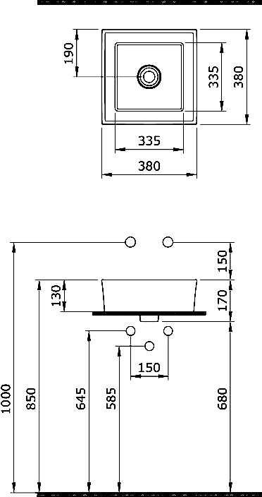 Размер раковины: 38x17x38 см