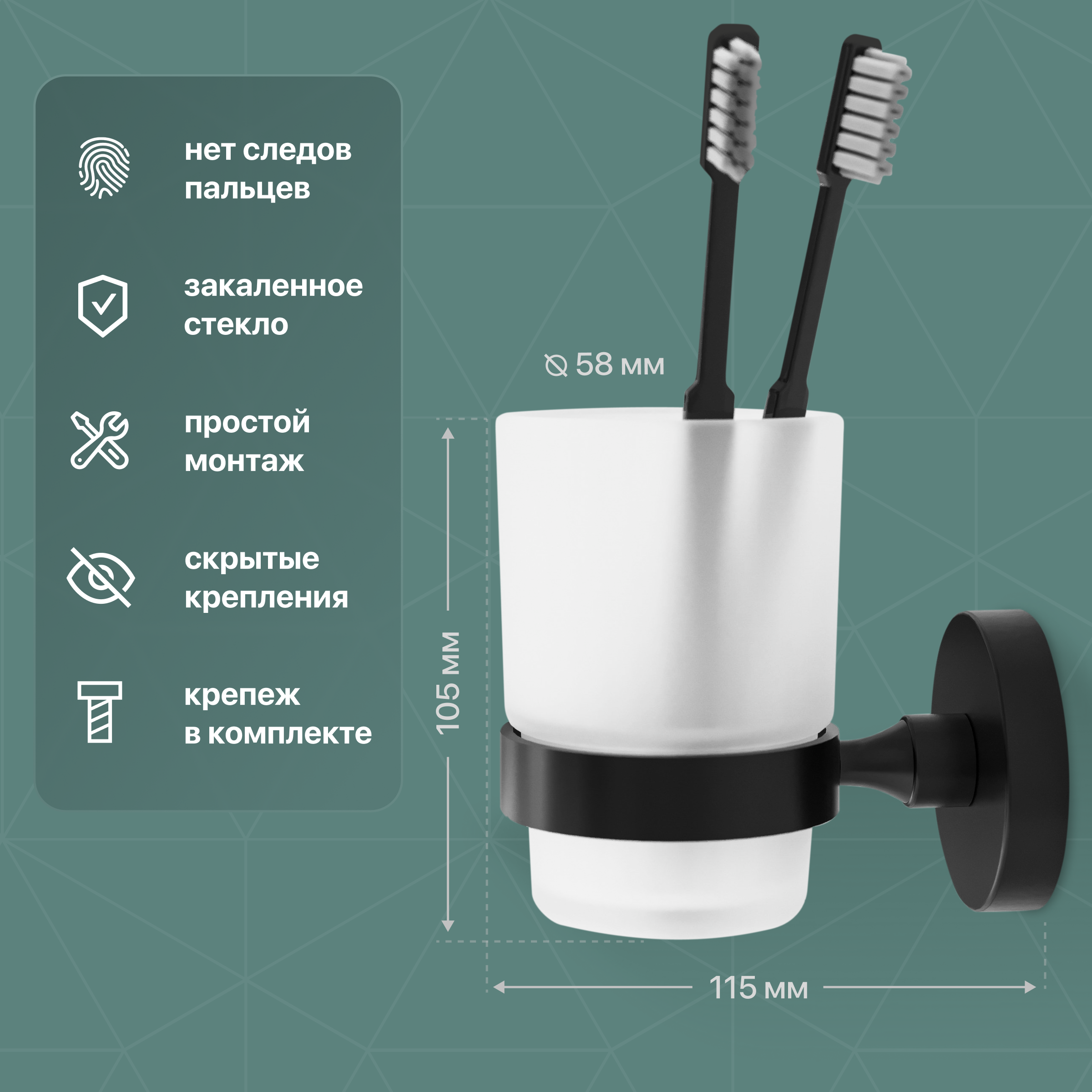 Стакан для ванной DEKOR BANYO Alina Black A40 406 04 настенный, черный, стеклянный