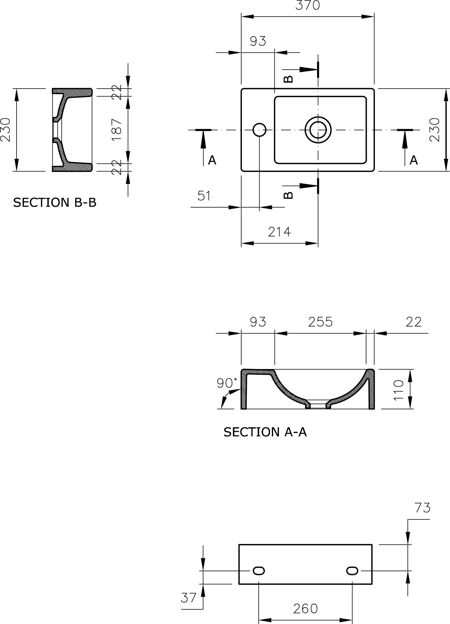 Размер раковины: 37x11x23 см