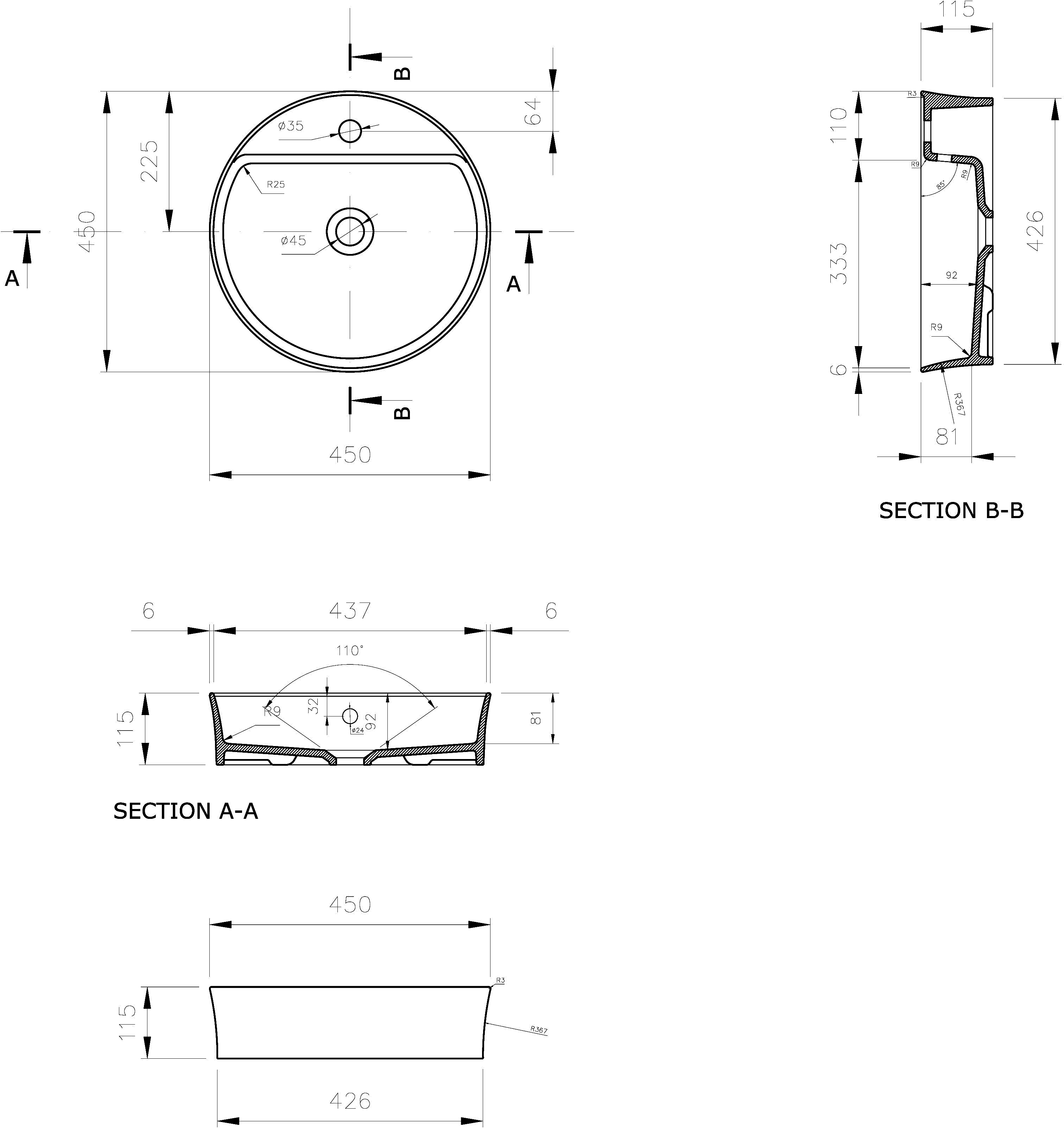 Размер раковины: 45x11,5x45 см