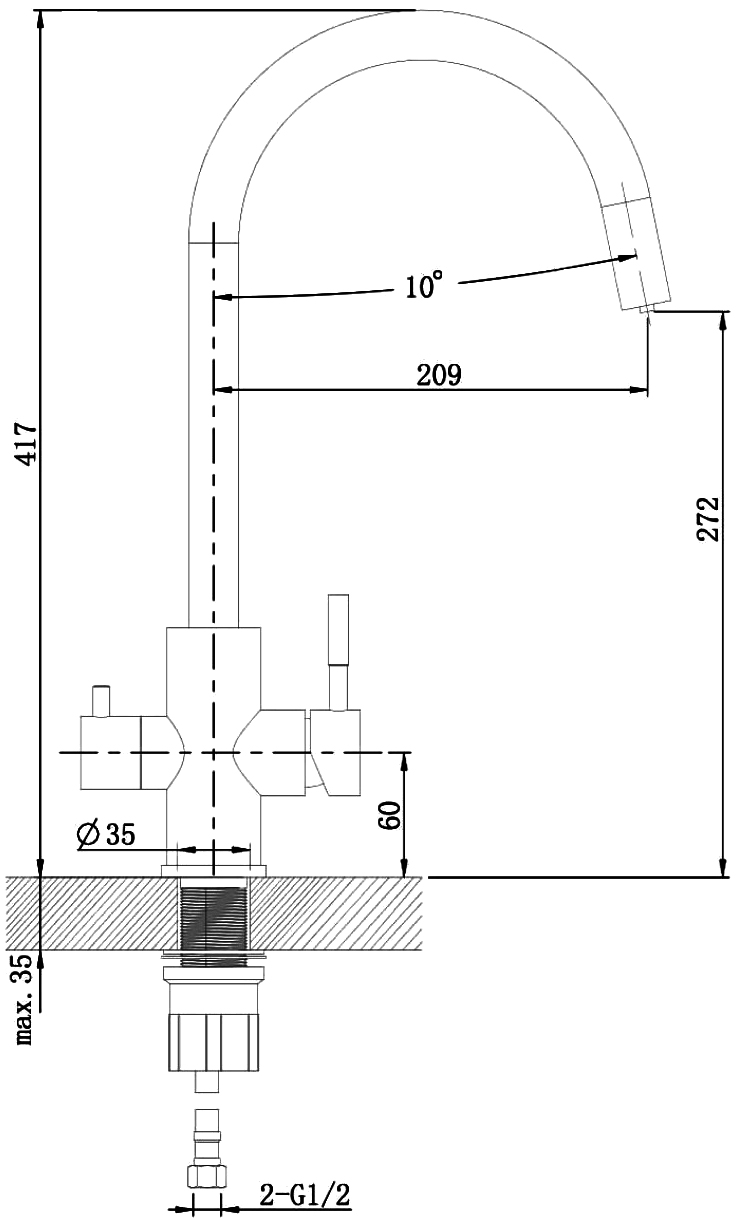 Стандарт подводки: 1/2"