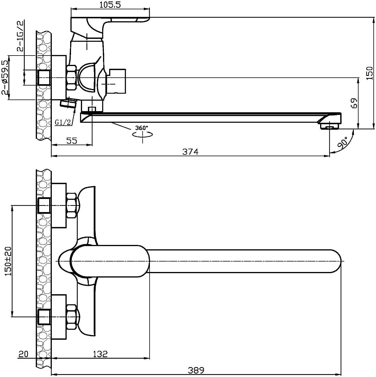 Оснащение: эксцентрики,настенный держатель,душевой шланг,душевая лейка,аэратор