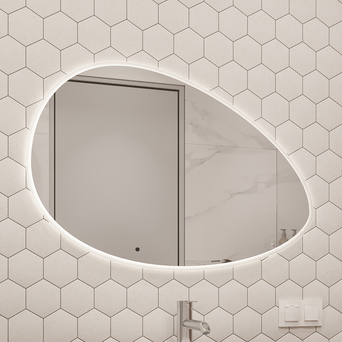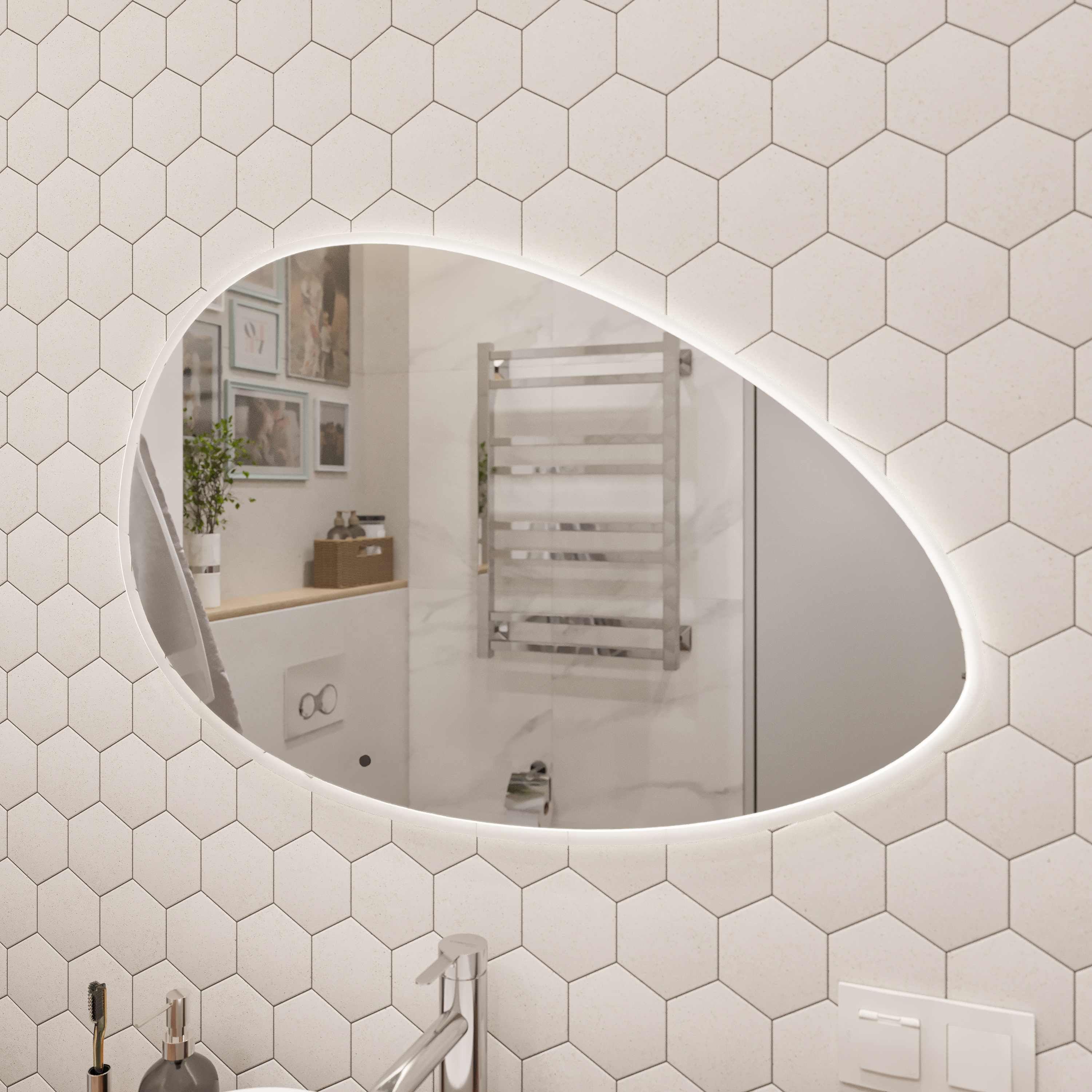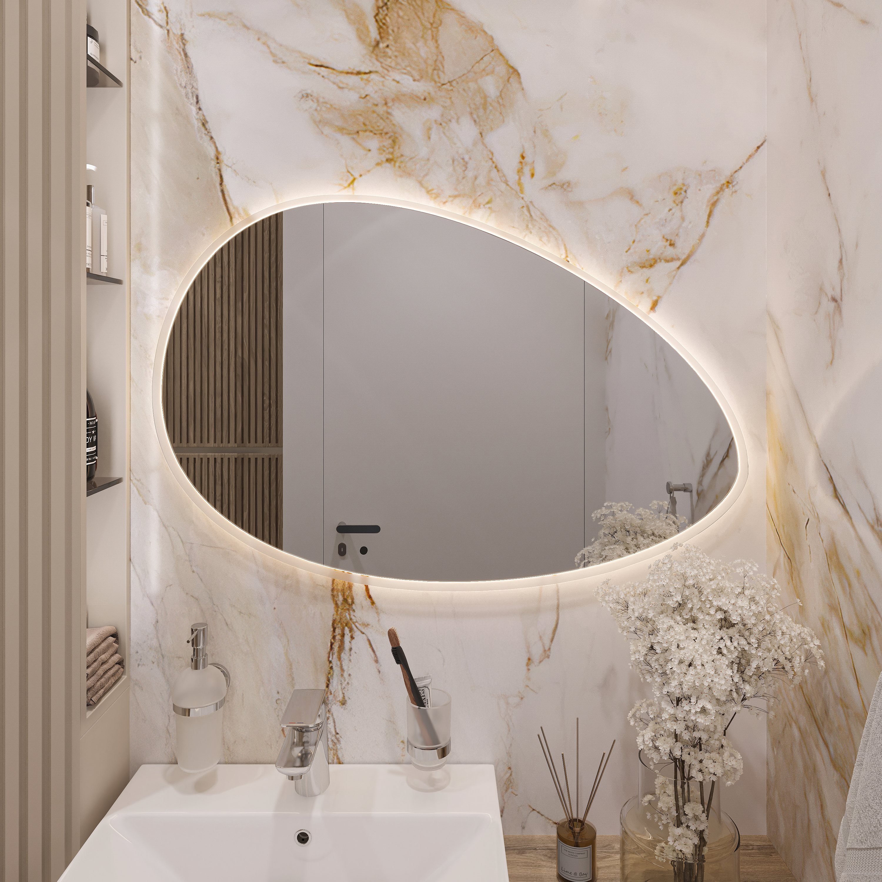 Зеркало STWORKI Скаген 92 с подсветкой, белое, инфракрасное управление, овальное
