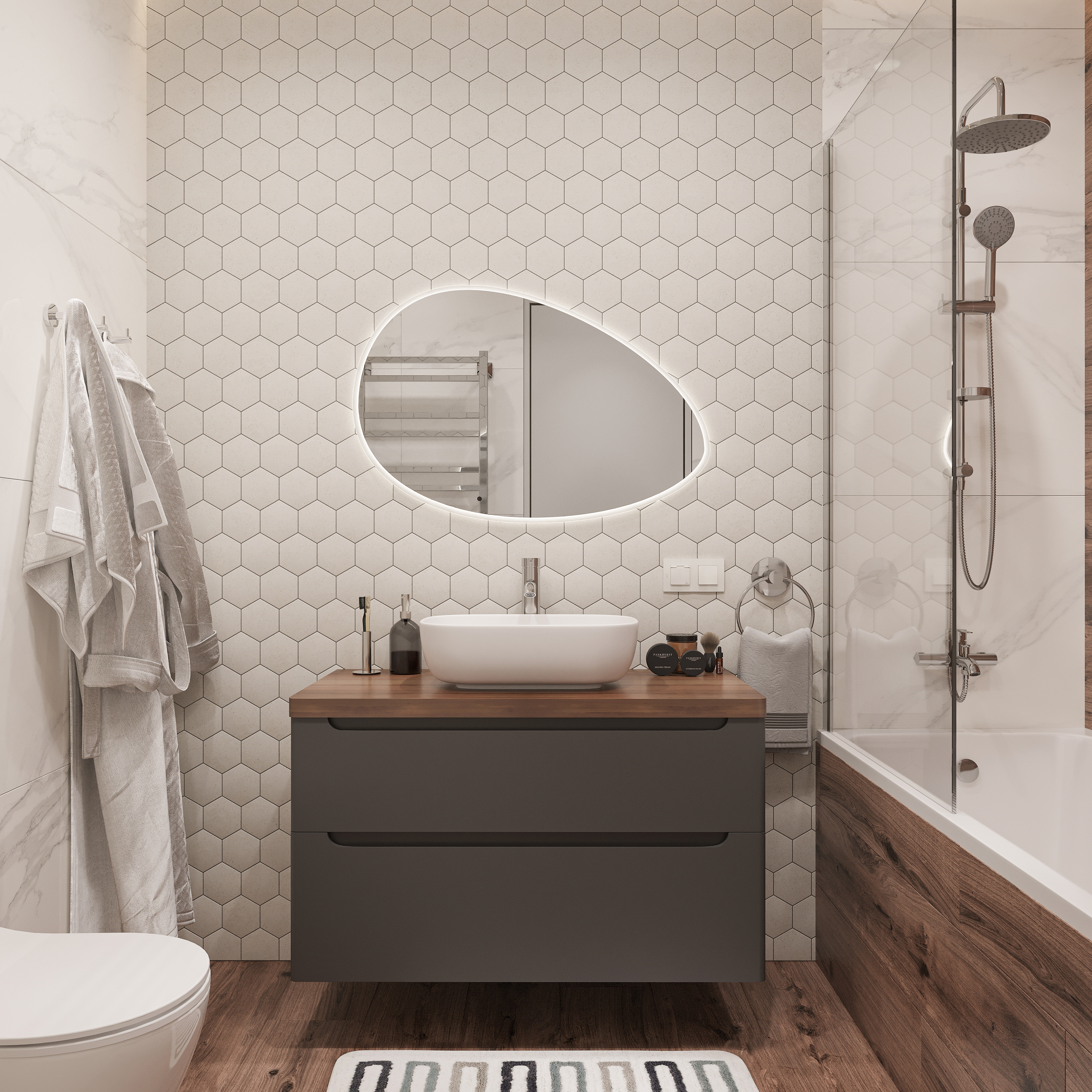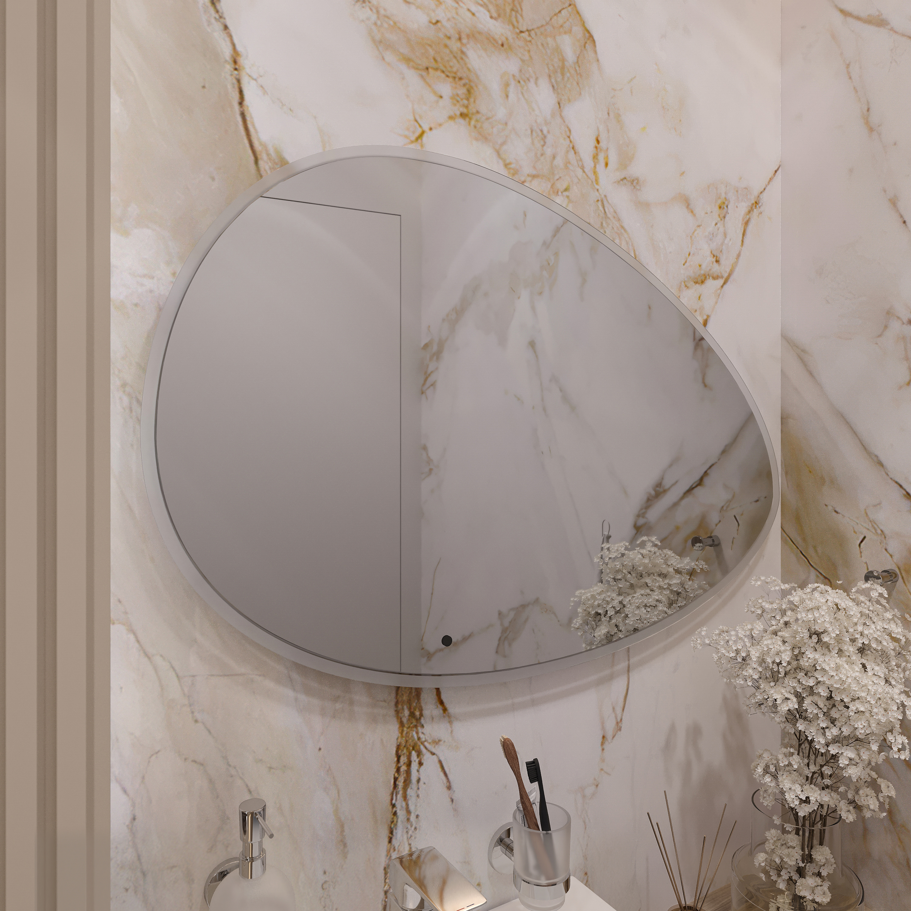 Оснащение зеркала: регулируемая подсветка,подвесы