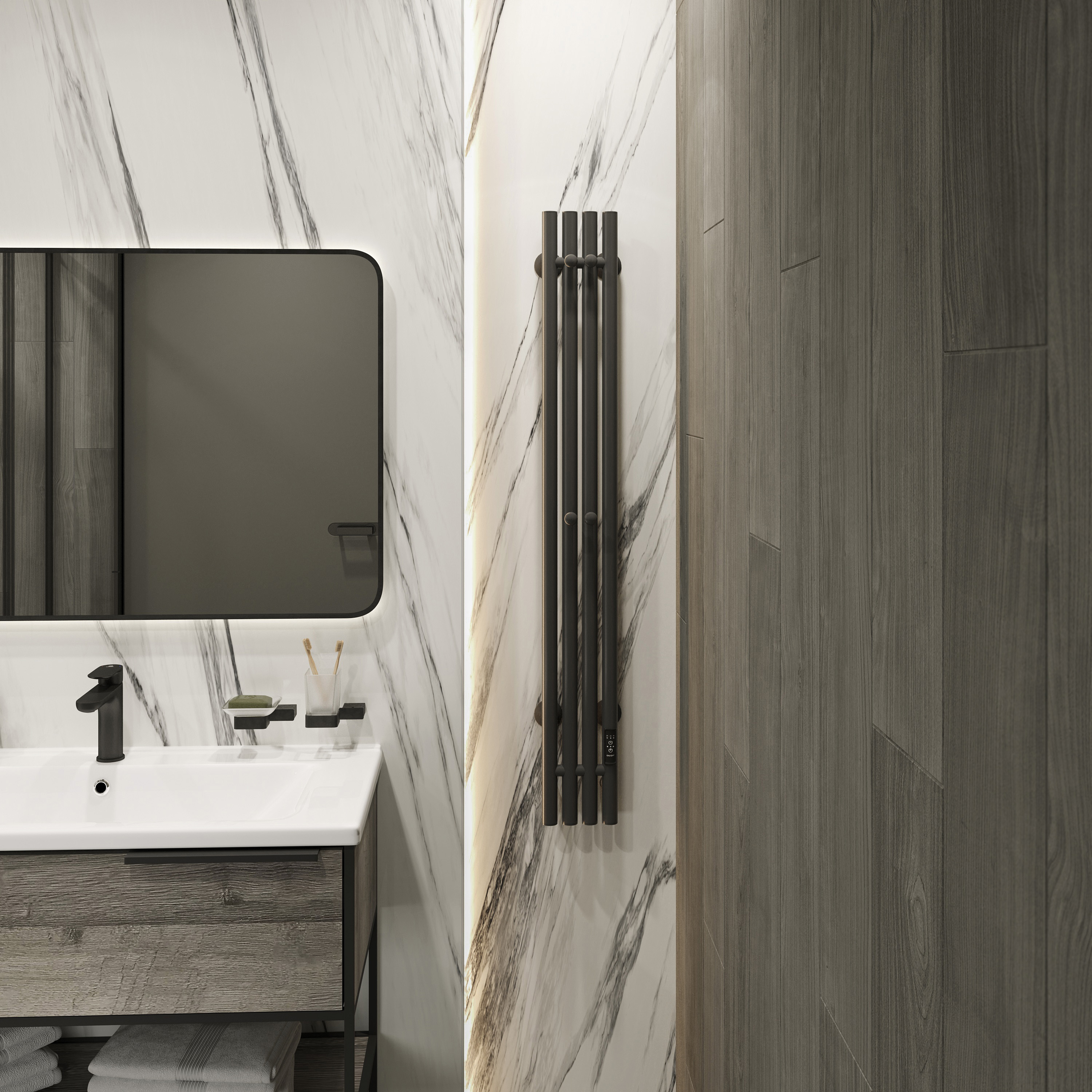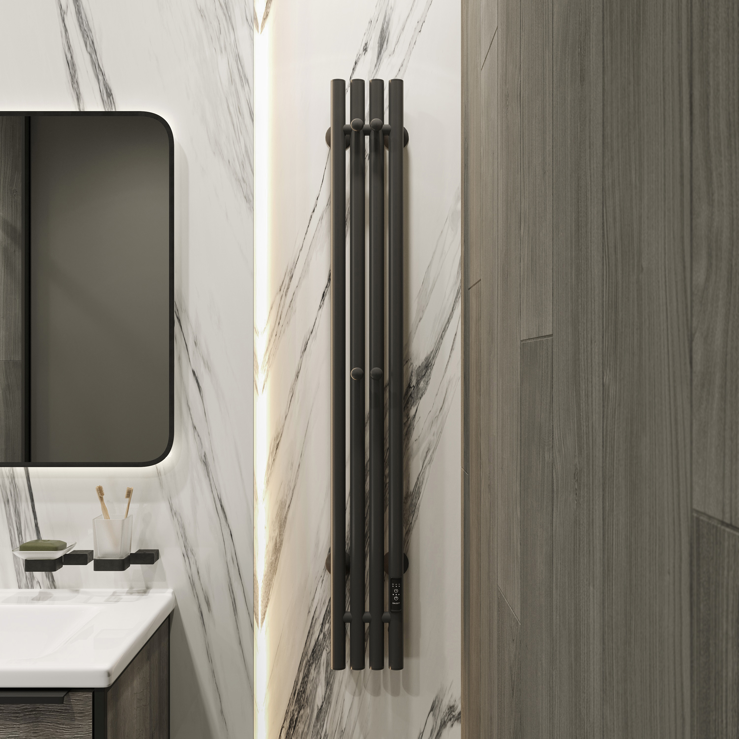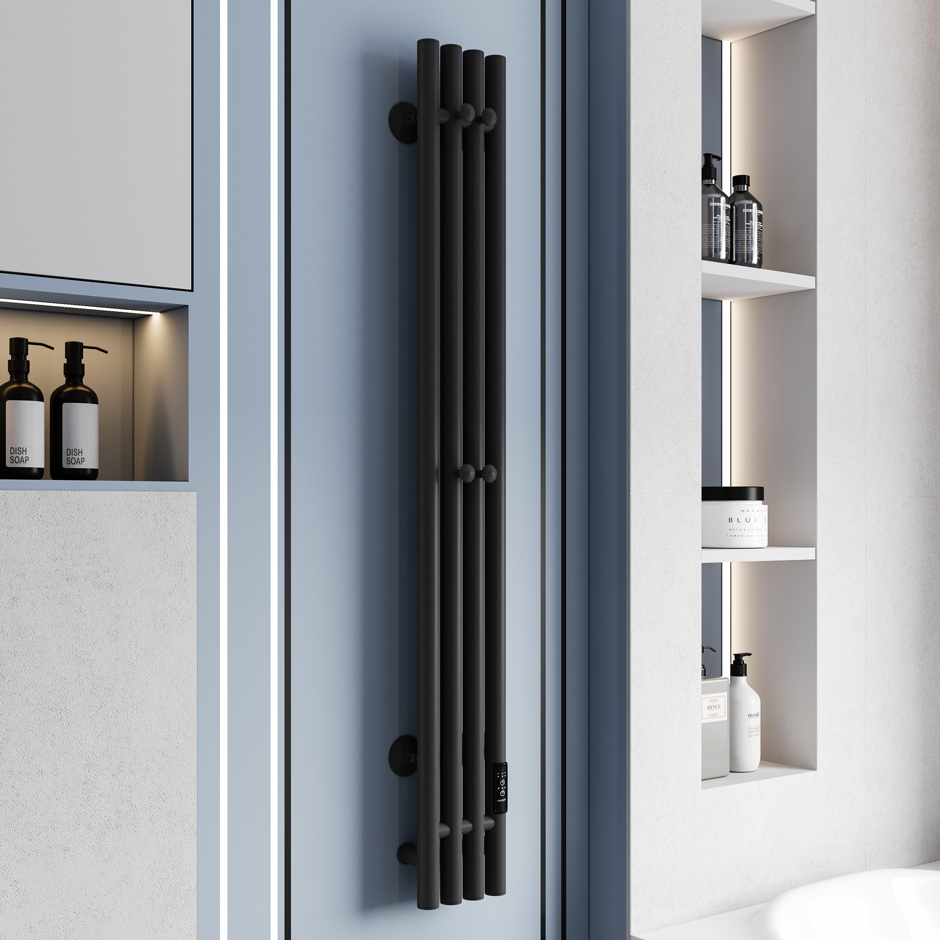 Полотенцесушитель электрический EWRIKA Пенелопа V 120x20 см, подключение справа, скрытое подключение справа, матовый черный, лесенка, из стали