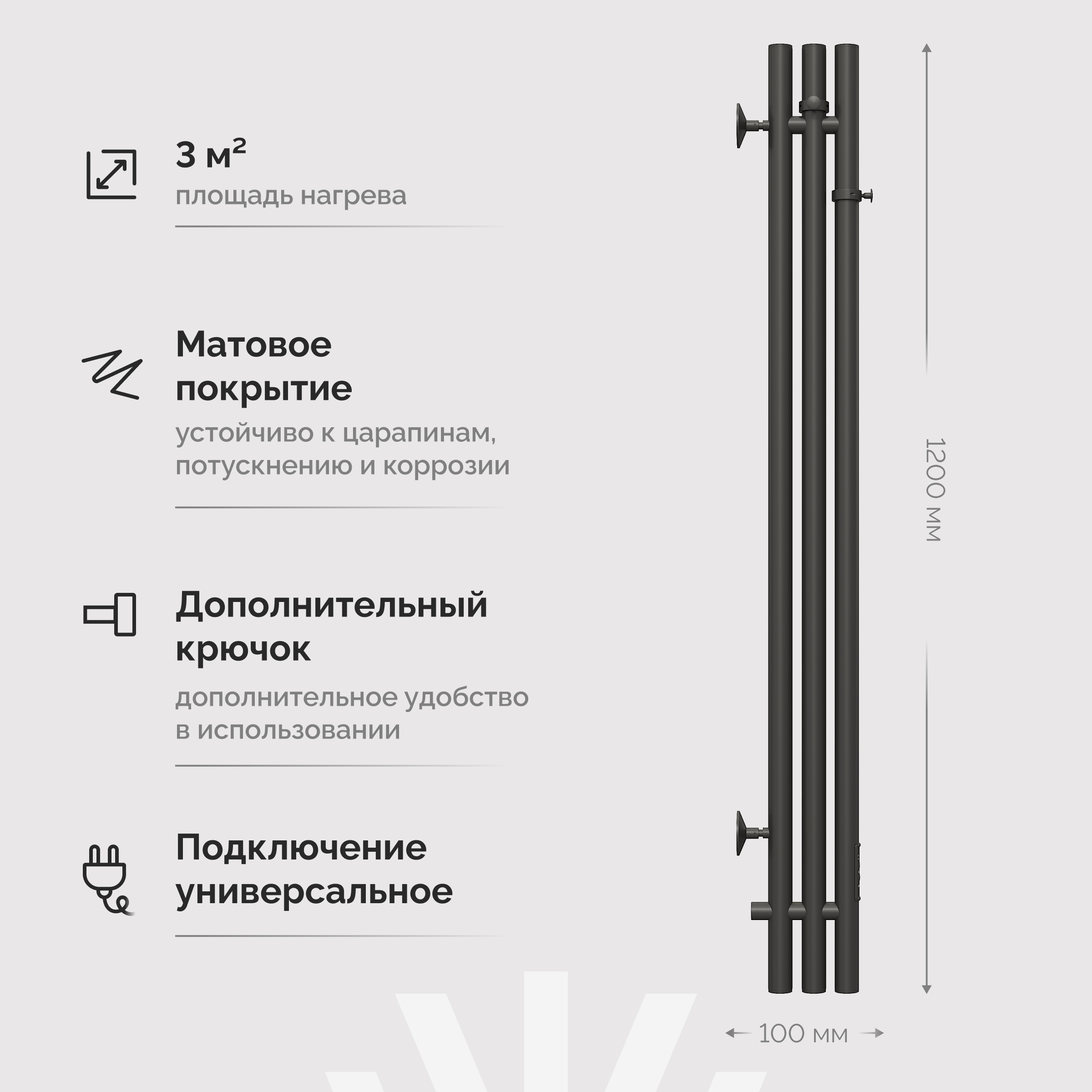Полотенцесушитель электрический EWRIKA Пенелопа X 120х10, черный