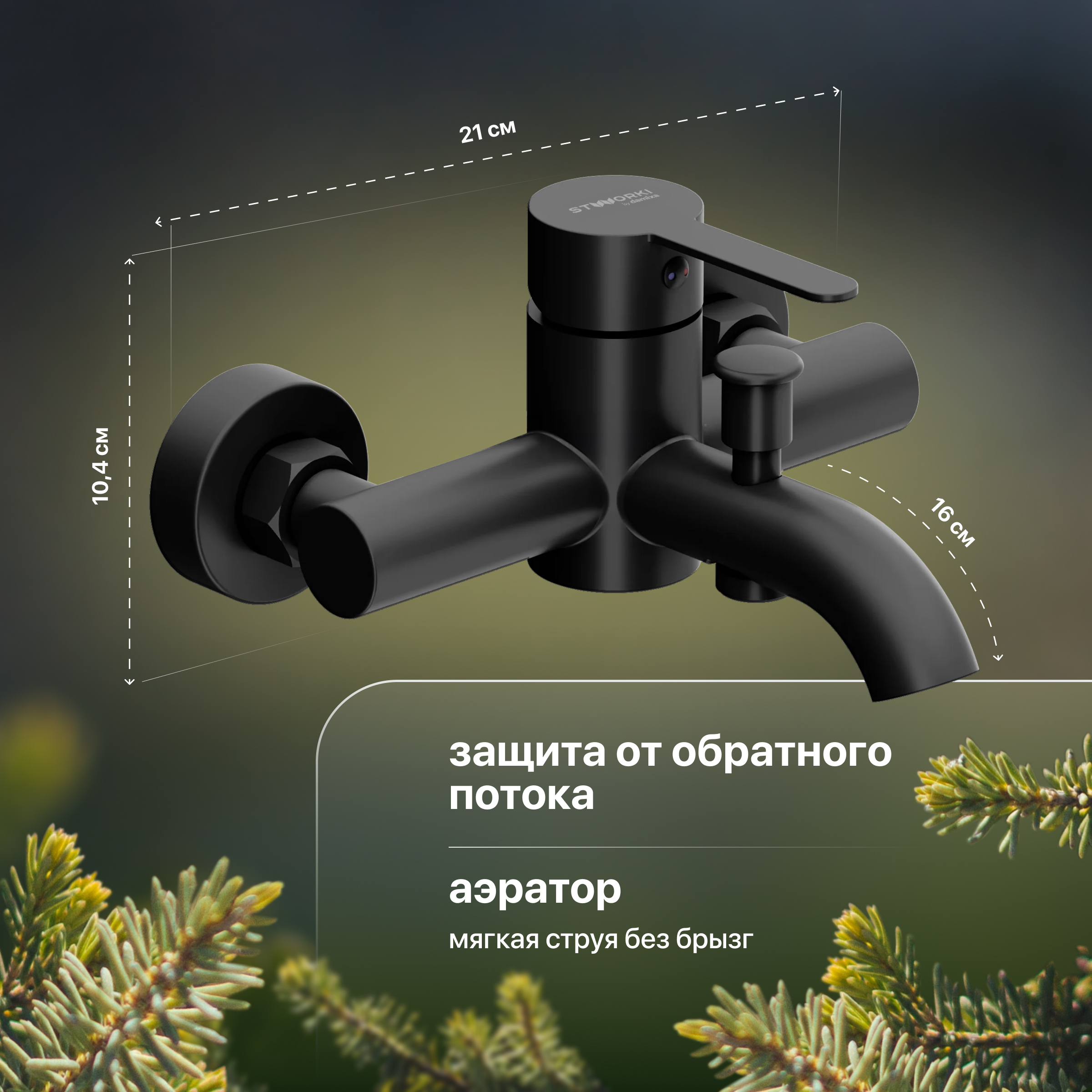Смеситель для ванны с душем STWORKI Стокгольм HFSG10030 черный, однорычажный, латунь, настенный, матовый