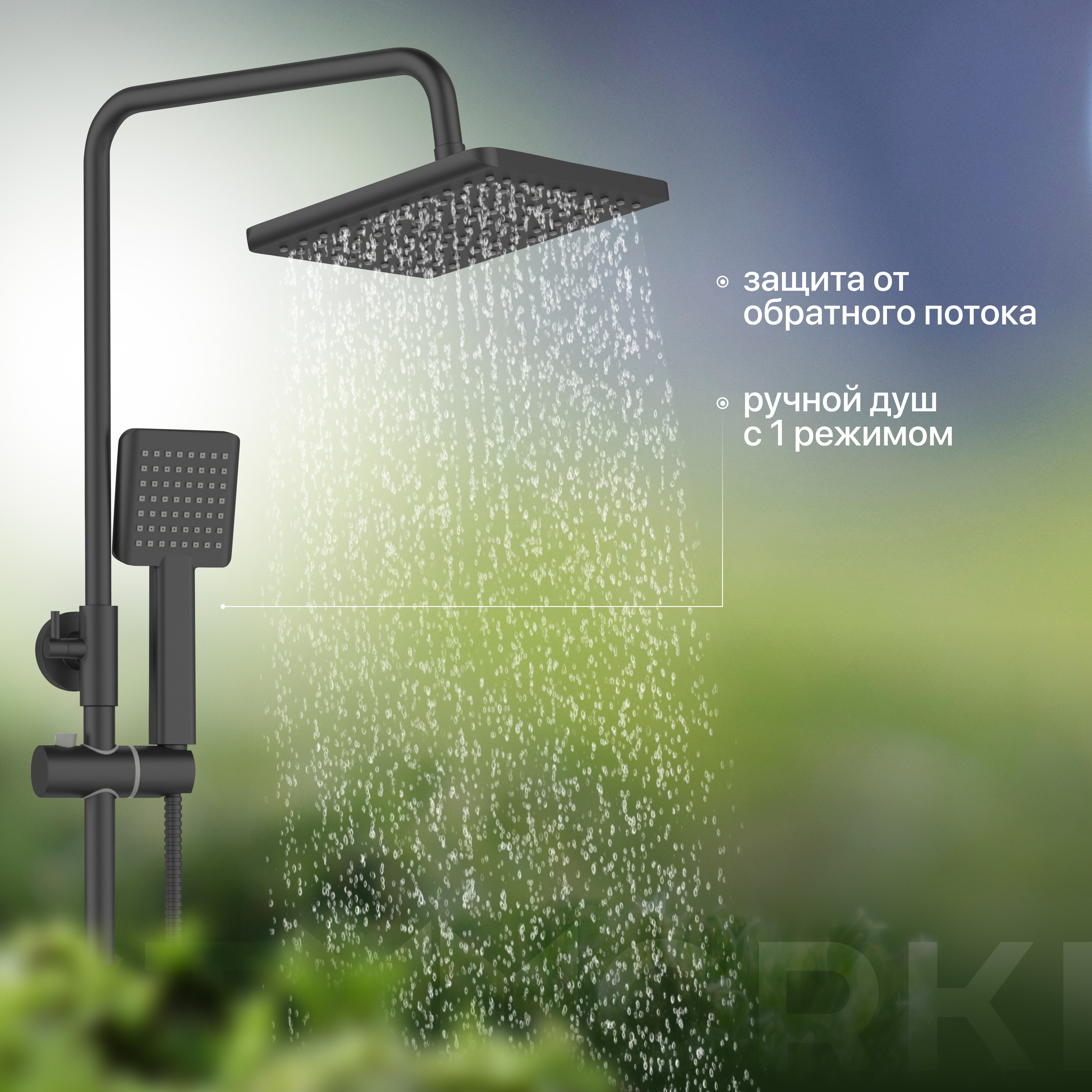 Включает: ручная лейка,верхний душ