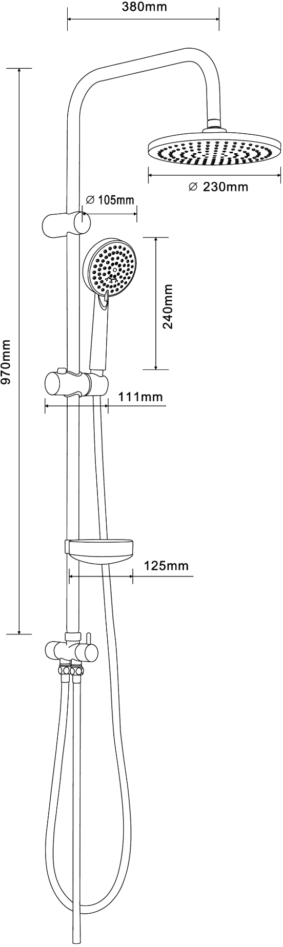 Включает: ручная лейка,верхний душ