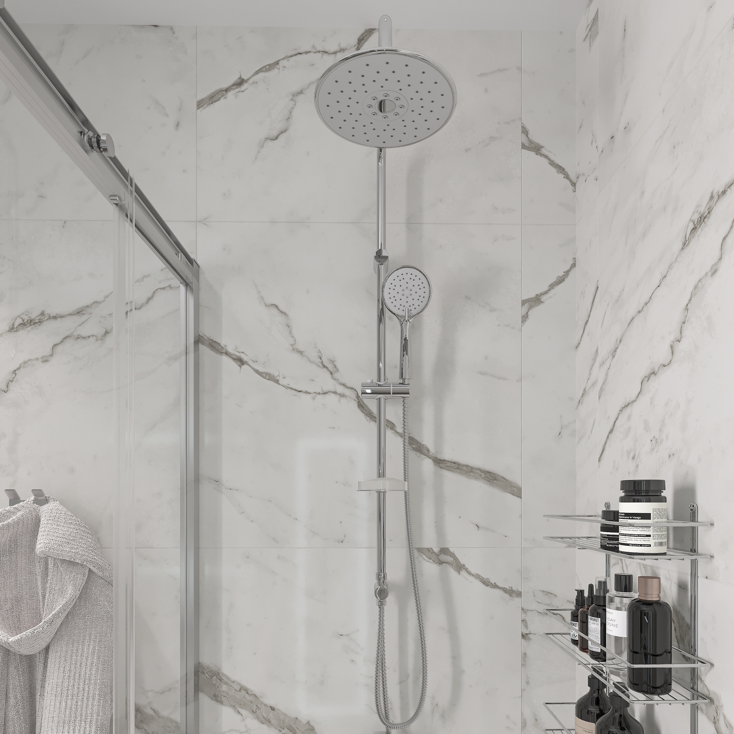 Включает: ручная лейка,верхний душ