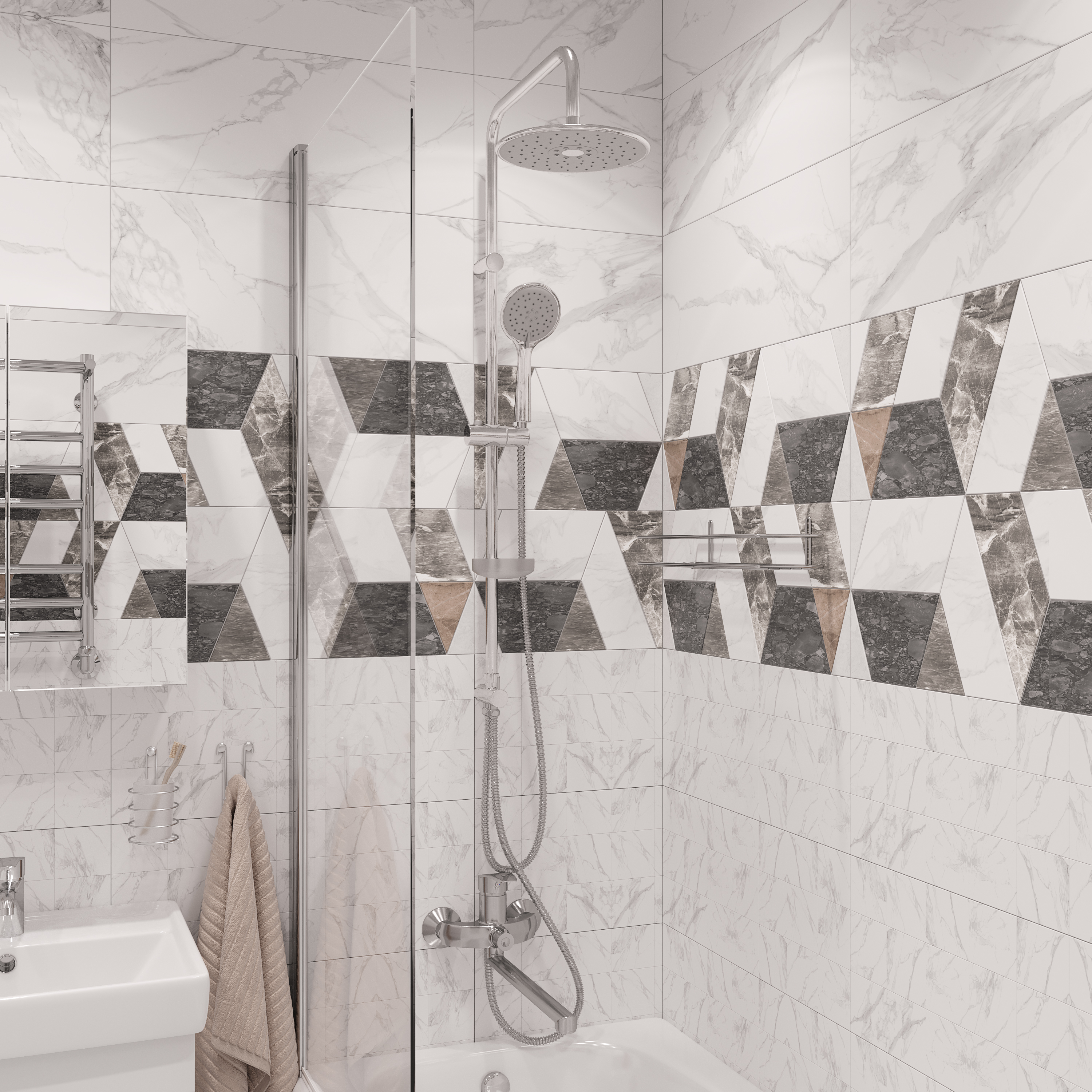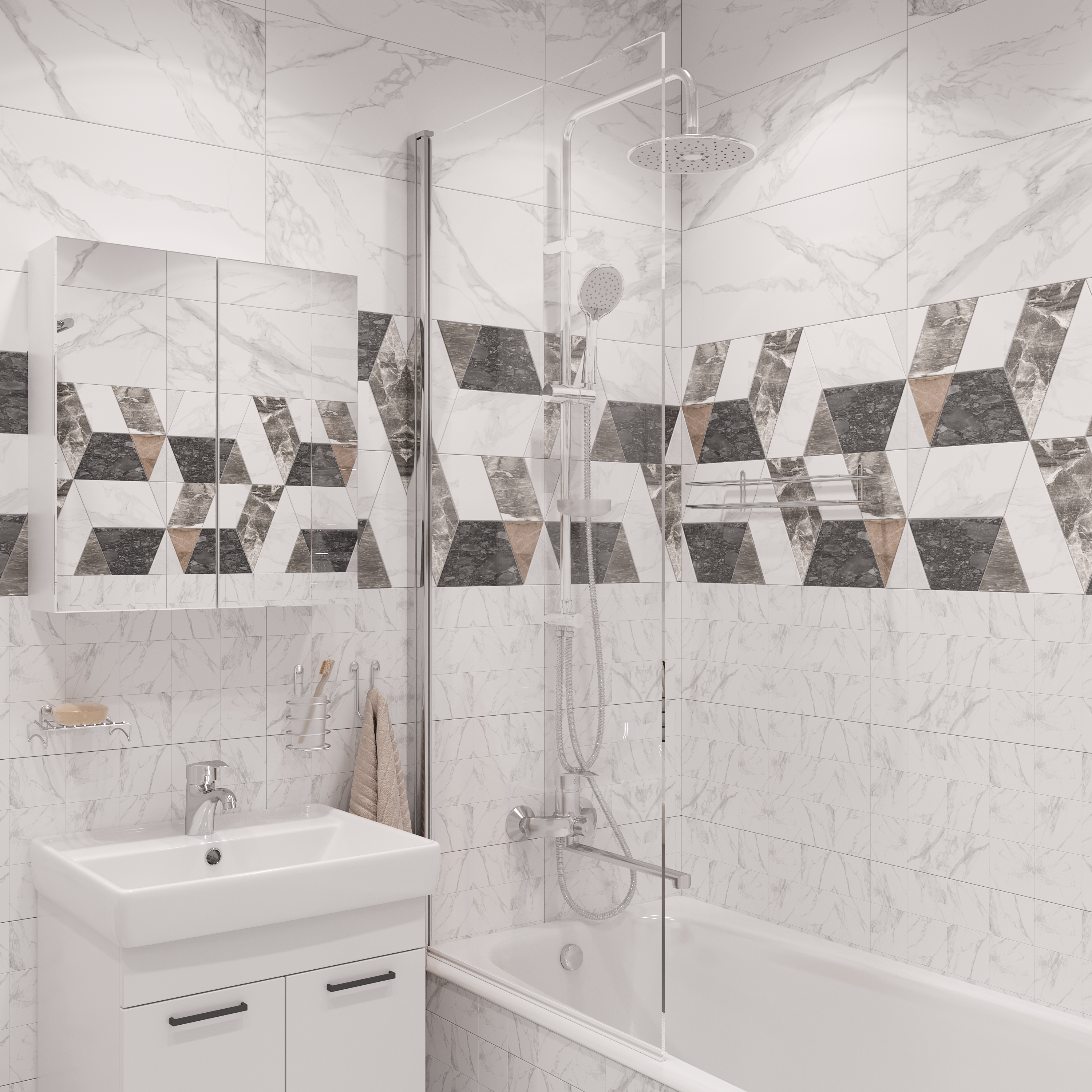 Оснащение: душевой шланг,душевая лейка,держатель для душа,переключатель потоков