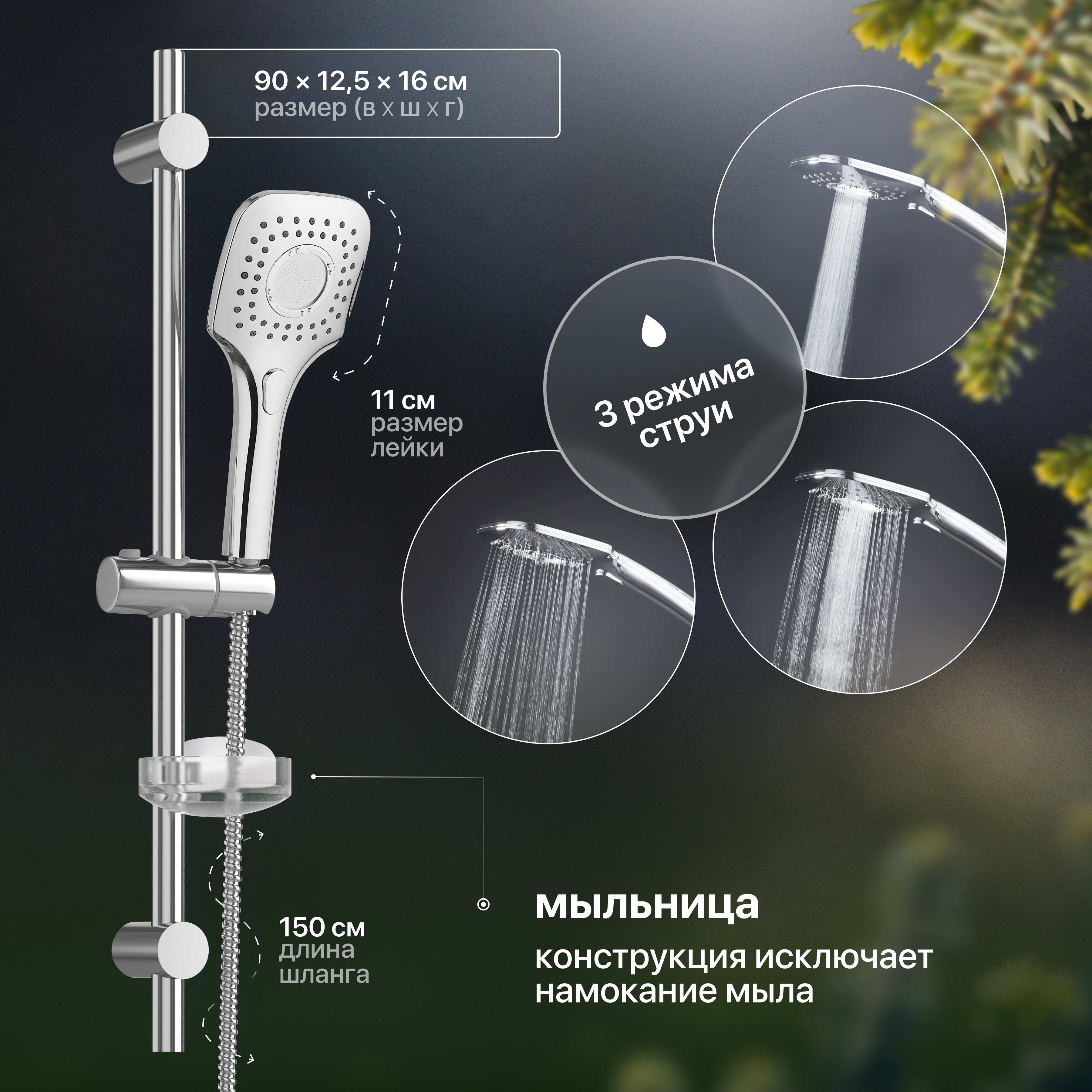 Преимущества: сверхпрочное хромоникелевое покрытие,мыльница с отверстиями