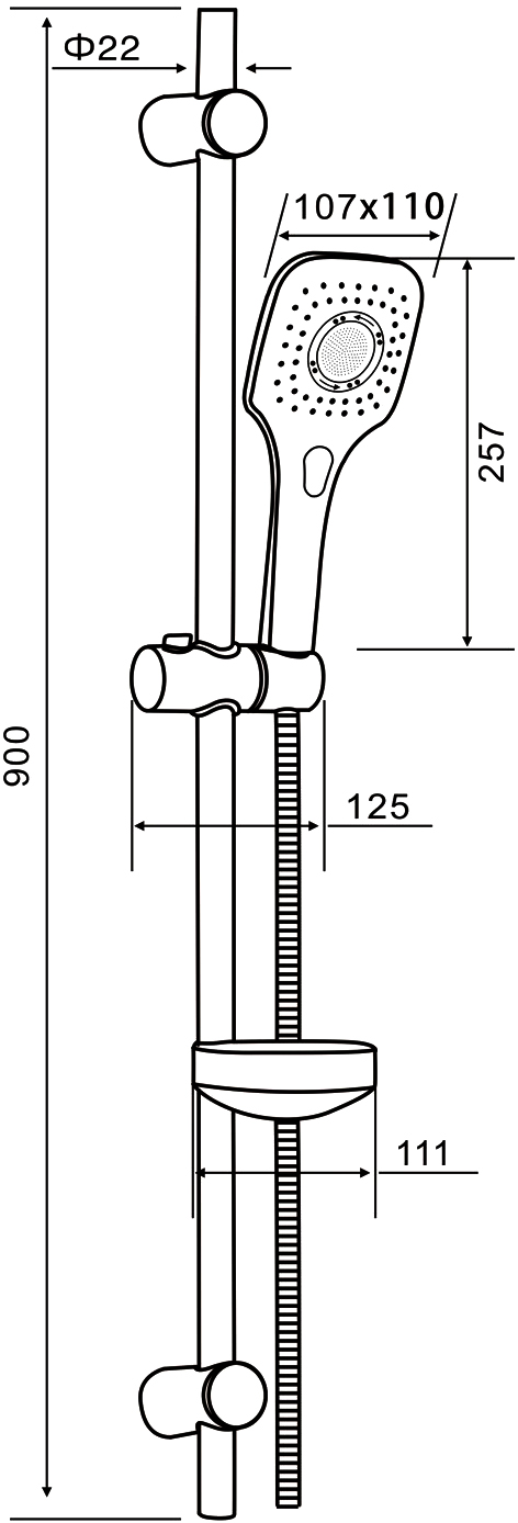 Оснащение: душевой шланг,душевая штанга,держатель для душа