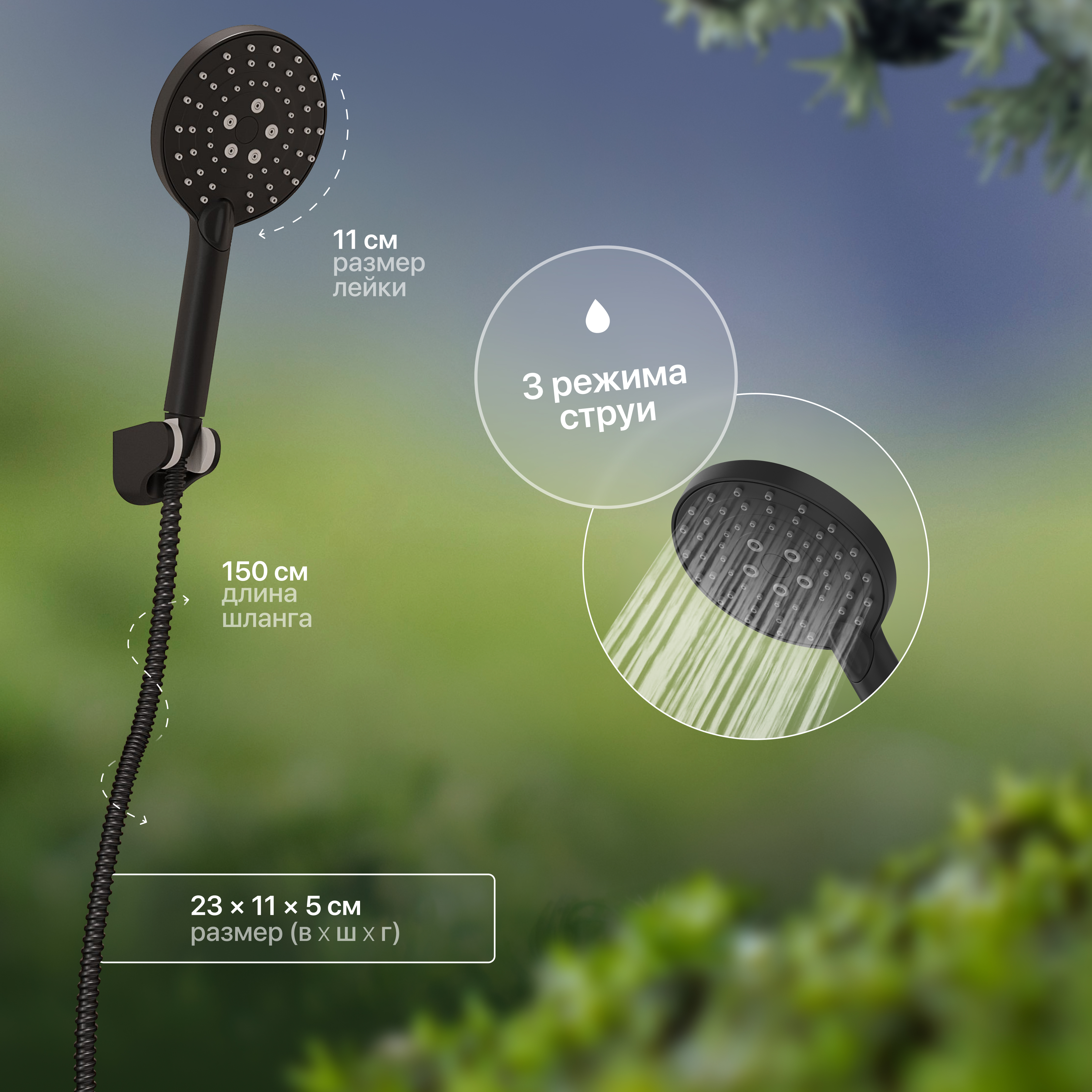 Дополнительное оснащение: настенный держатель,душевой шланг