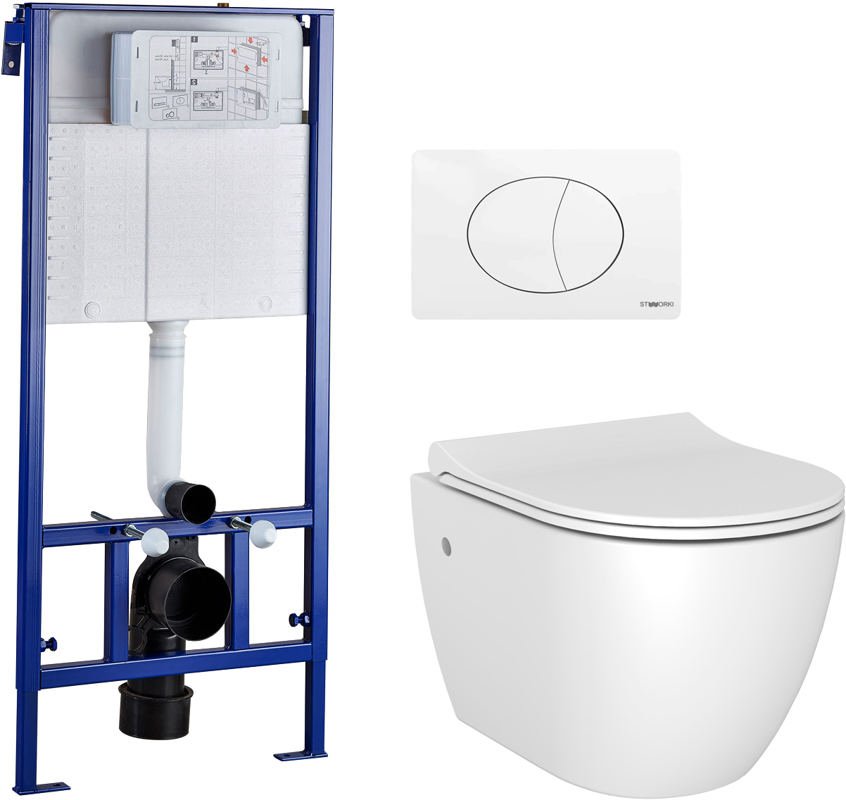 Состав комплекта: унитаз,кнопка смыва,система инсталляции