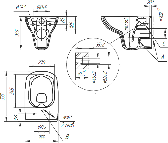 Тип для ЯМ: унитаз с инсталляцией