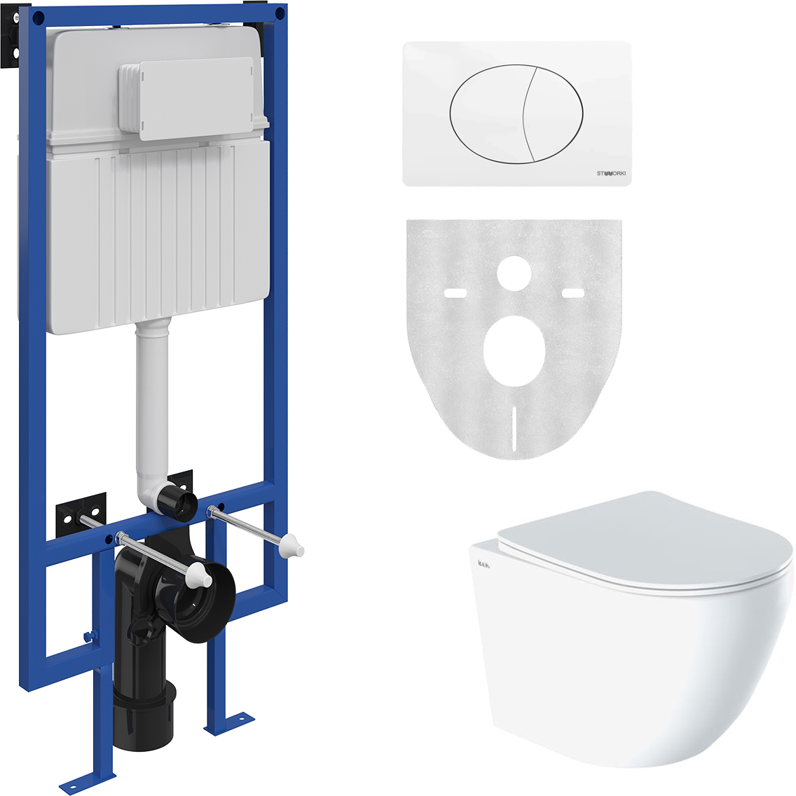 Комплект STWORKI Унитаз подвесной IDDIS Blanco BLARDSEi25 безободковый + Система инсталляции для унитазов STWORKI 510162 + кнопка смыва