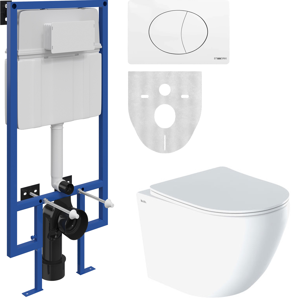 Комплект STWORKI Унитаз подвесной IDDIS Blanco BLARDSEi25 безободковый + Система инсталляции для унитазов STWORKI 510163 + кнопка смыва