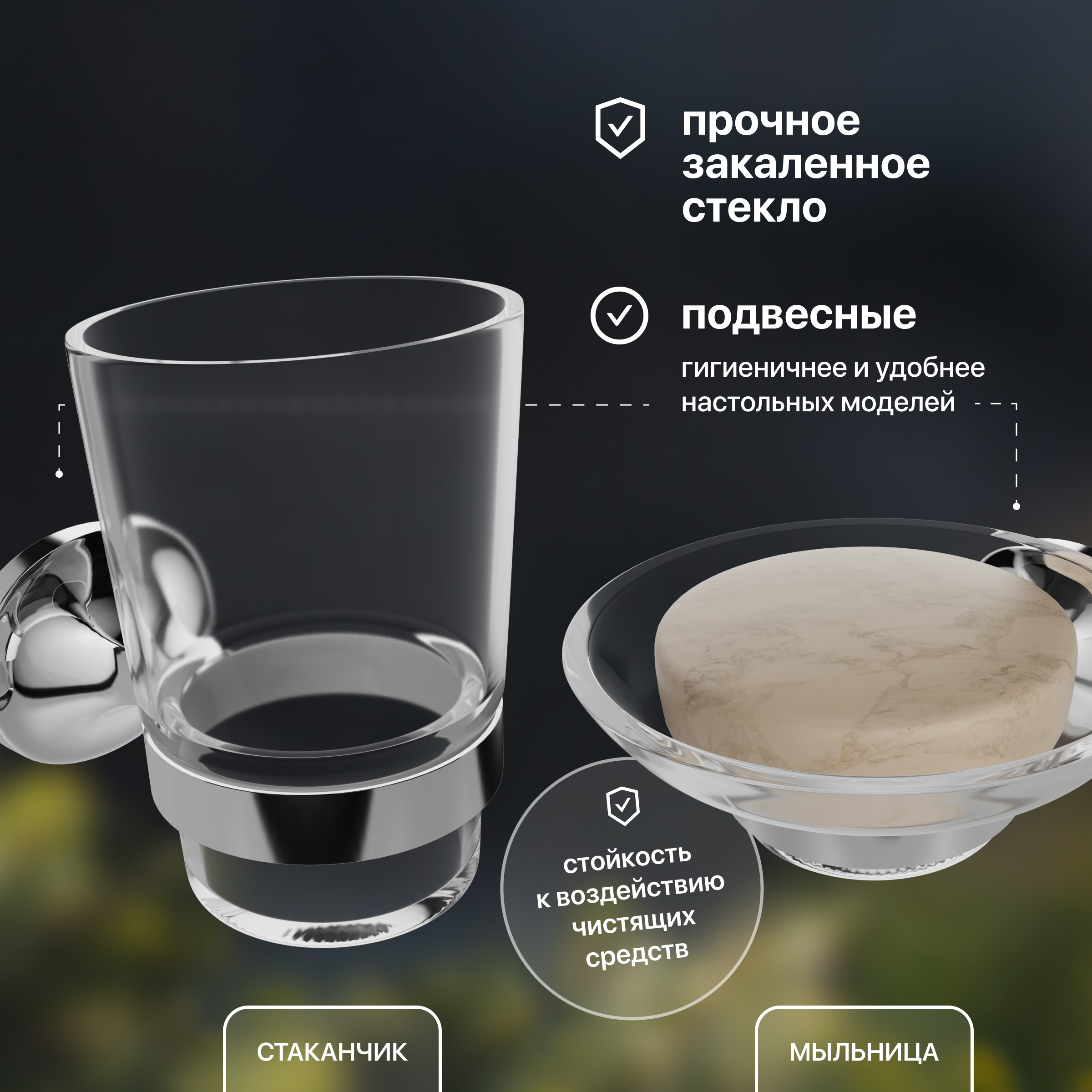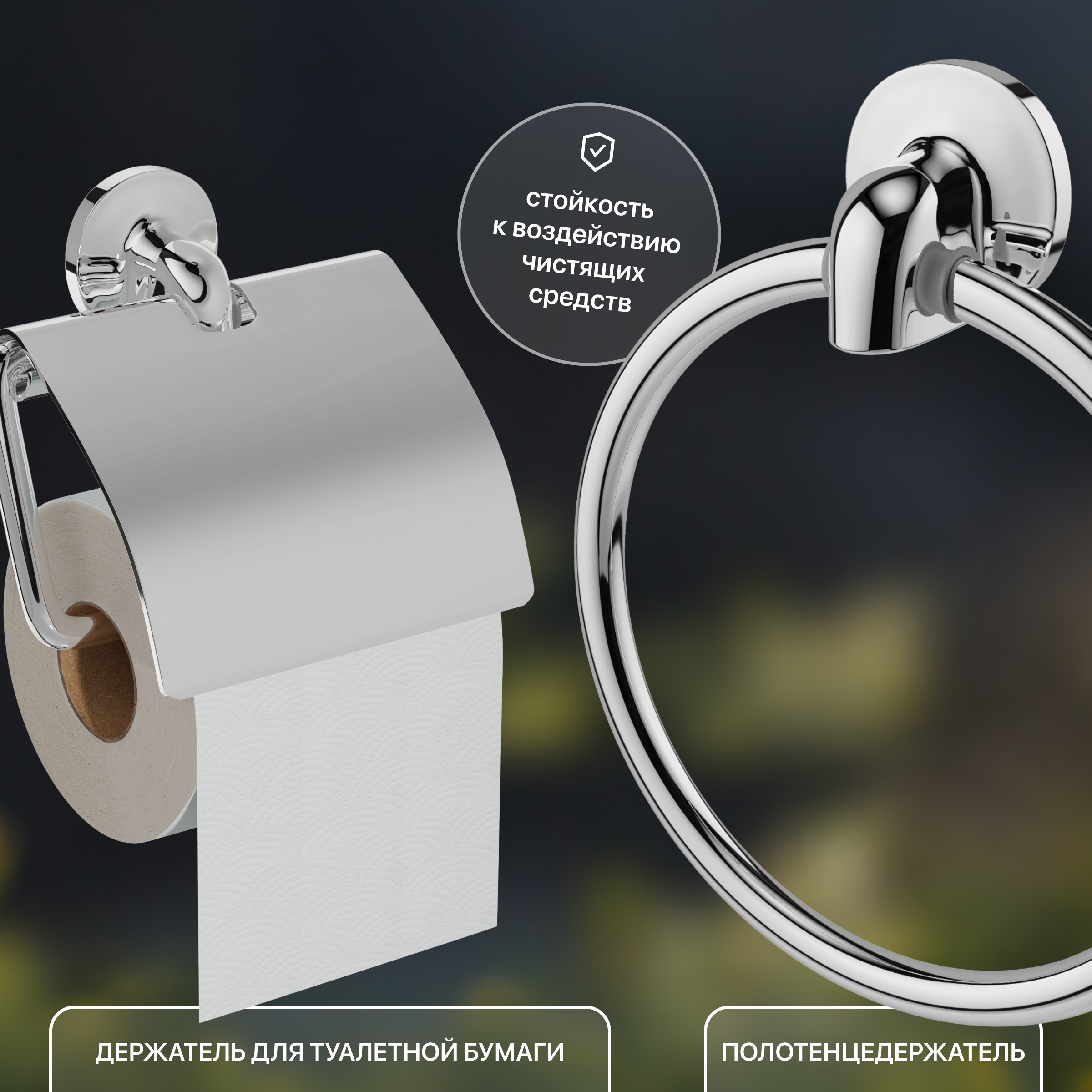 Включает: держатель туалетной бумаги,стакан,мыльница,полотенцедержатель,крючок для полотенец
