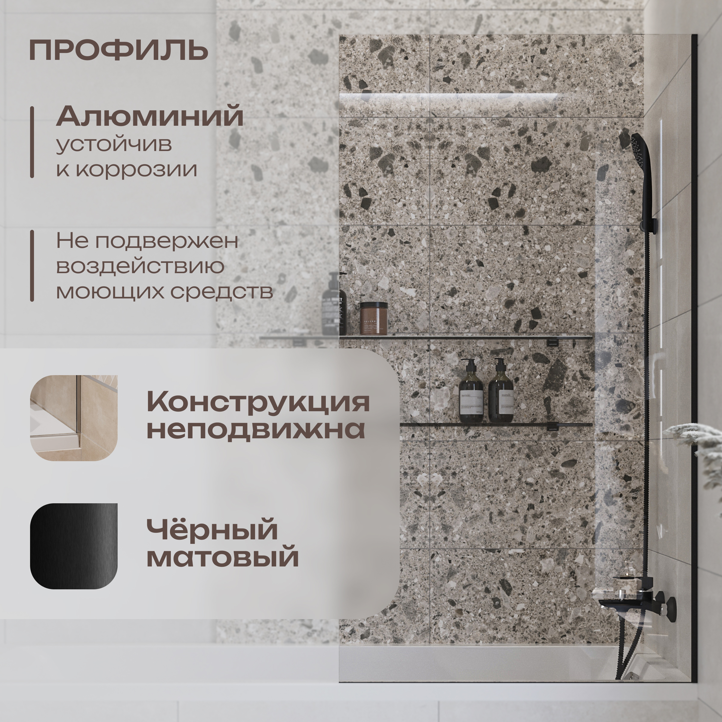 Шторка на ванну DIWO Ростов 4GW013 неподвижная, 80x150, черная матовая