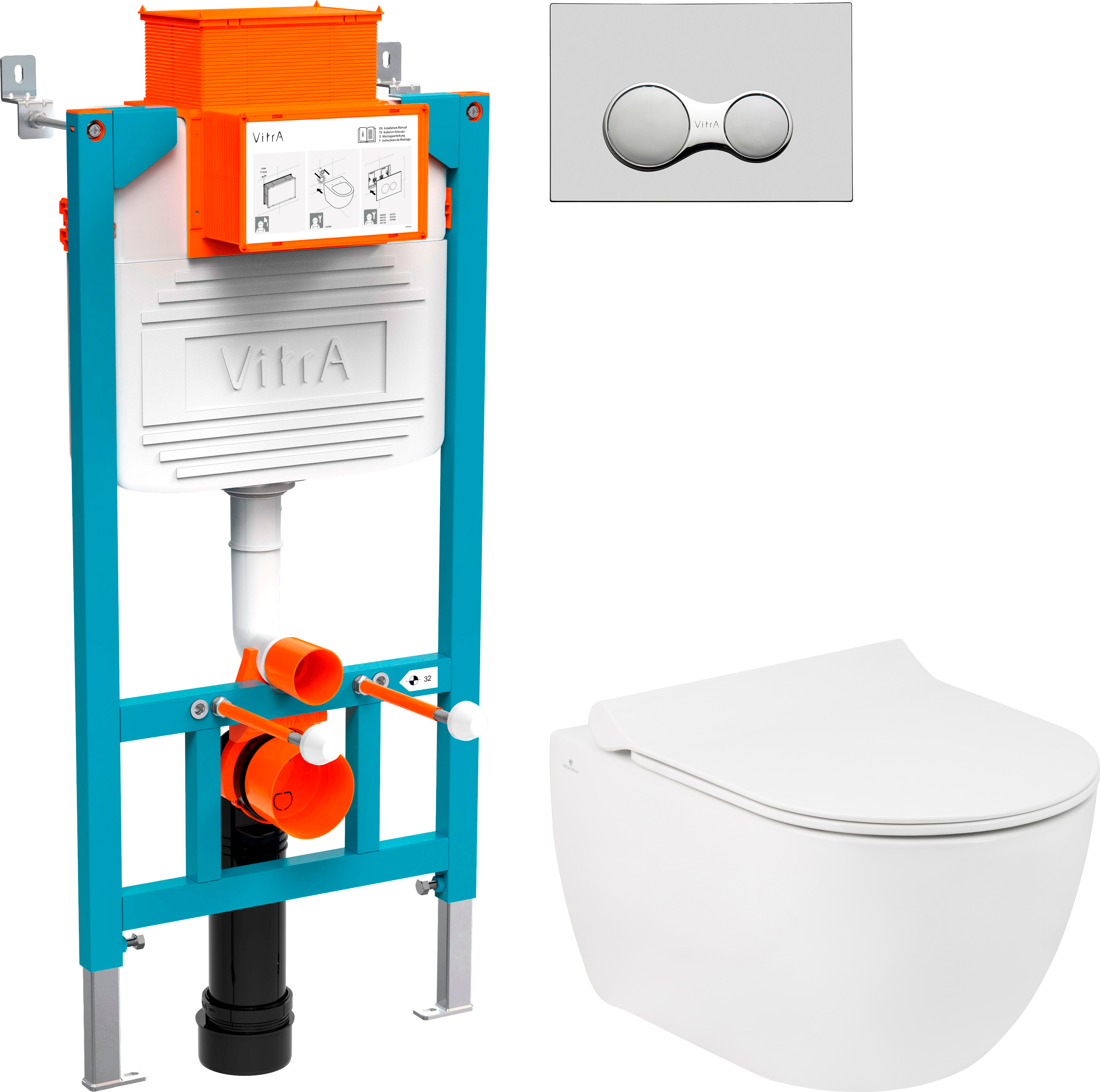 Комплект Унитаз подвесной Seramiksan Hill A031161H с микролифтом + Система инсталляции для унитазов VitrA 800-2015 с кнопкой смыва, хром