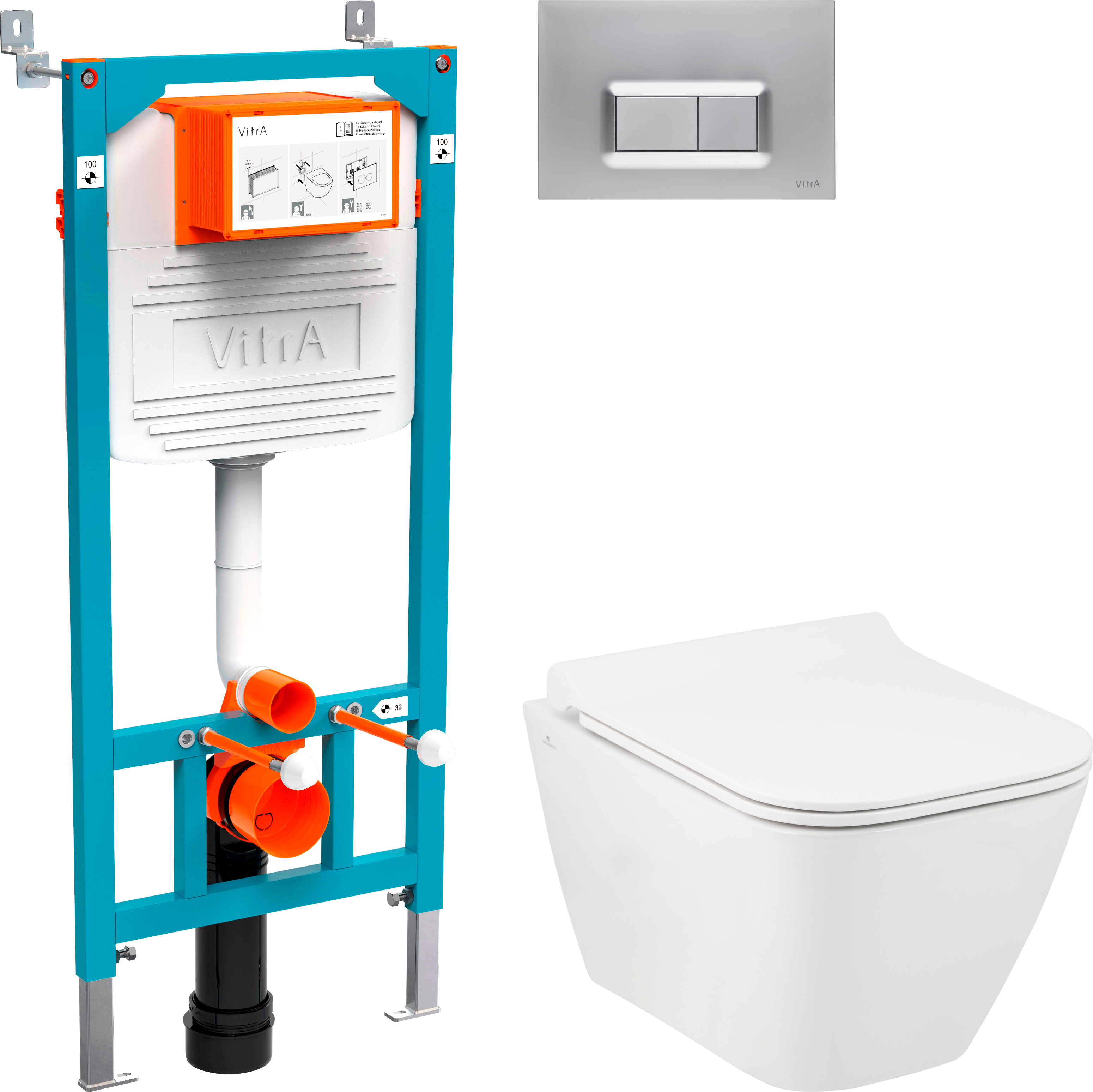 Состав комплекта: унитаз,кнопка смыва,система инсталляции