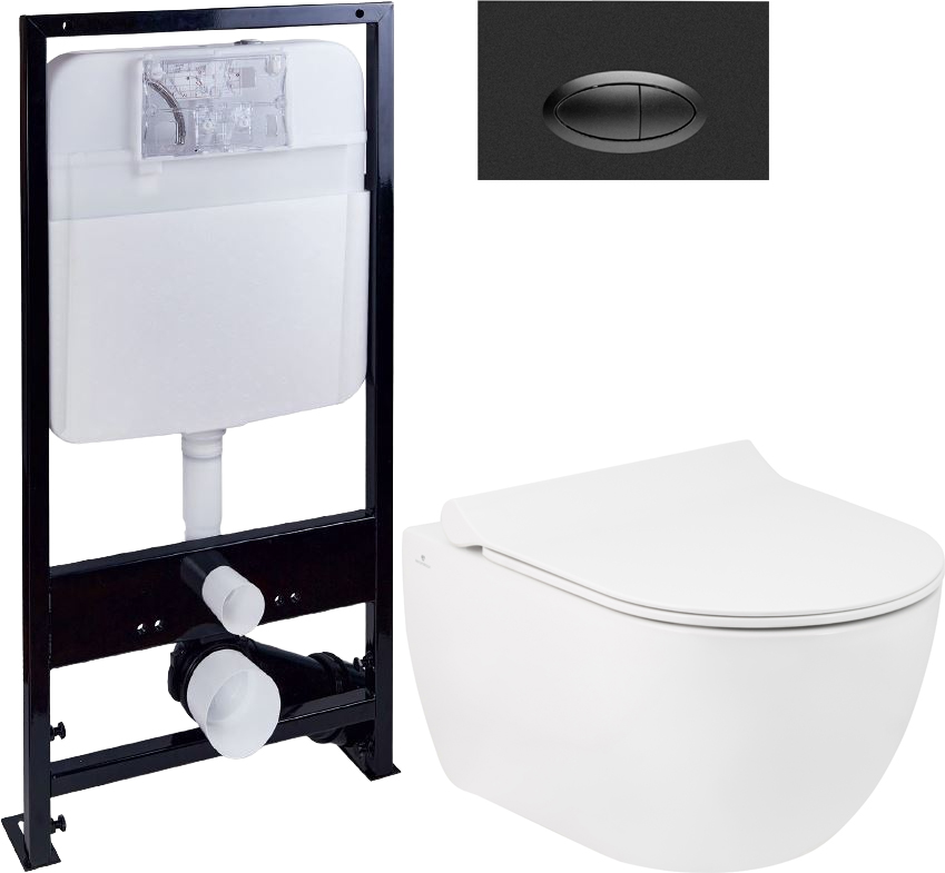 Комплект Унитаз подвесной Seramiksan Hill A031161H безободковая + Крышка Neon A030011 с микролифтом + Инсталляция EWRIKA ProLT 0026-2020 + Кнопка 0054 черная матовая