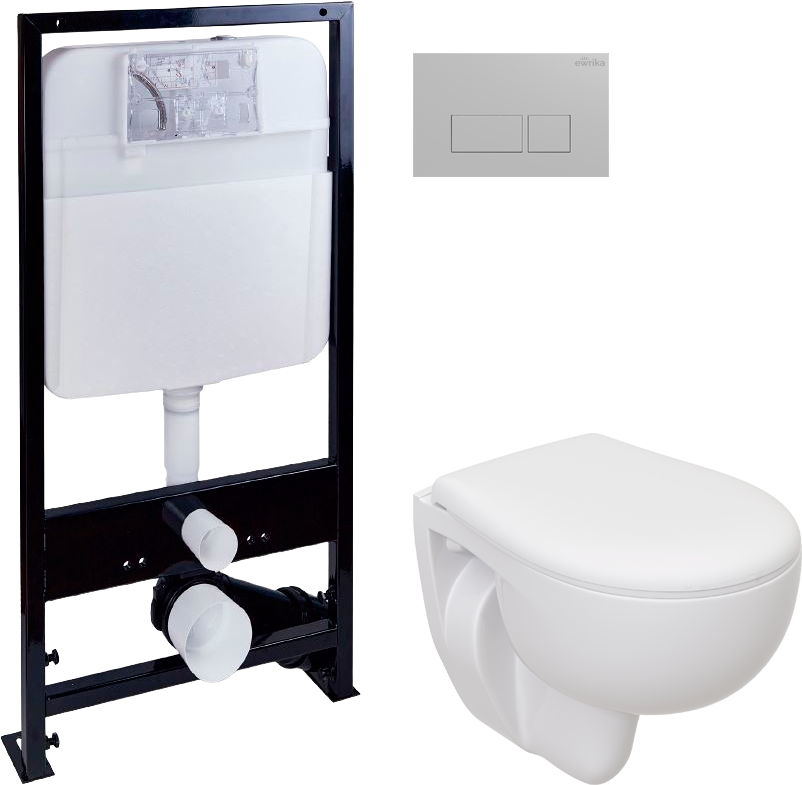 Комплект 4 в 1 Унитаз подвесной Seramiksan Natura A051041H + Сиденье AG50002 + Инсталляция EWRIKA ProLT 0026-2020 + Кнопка 0040 цвет матовый хром