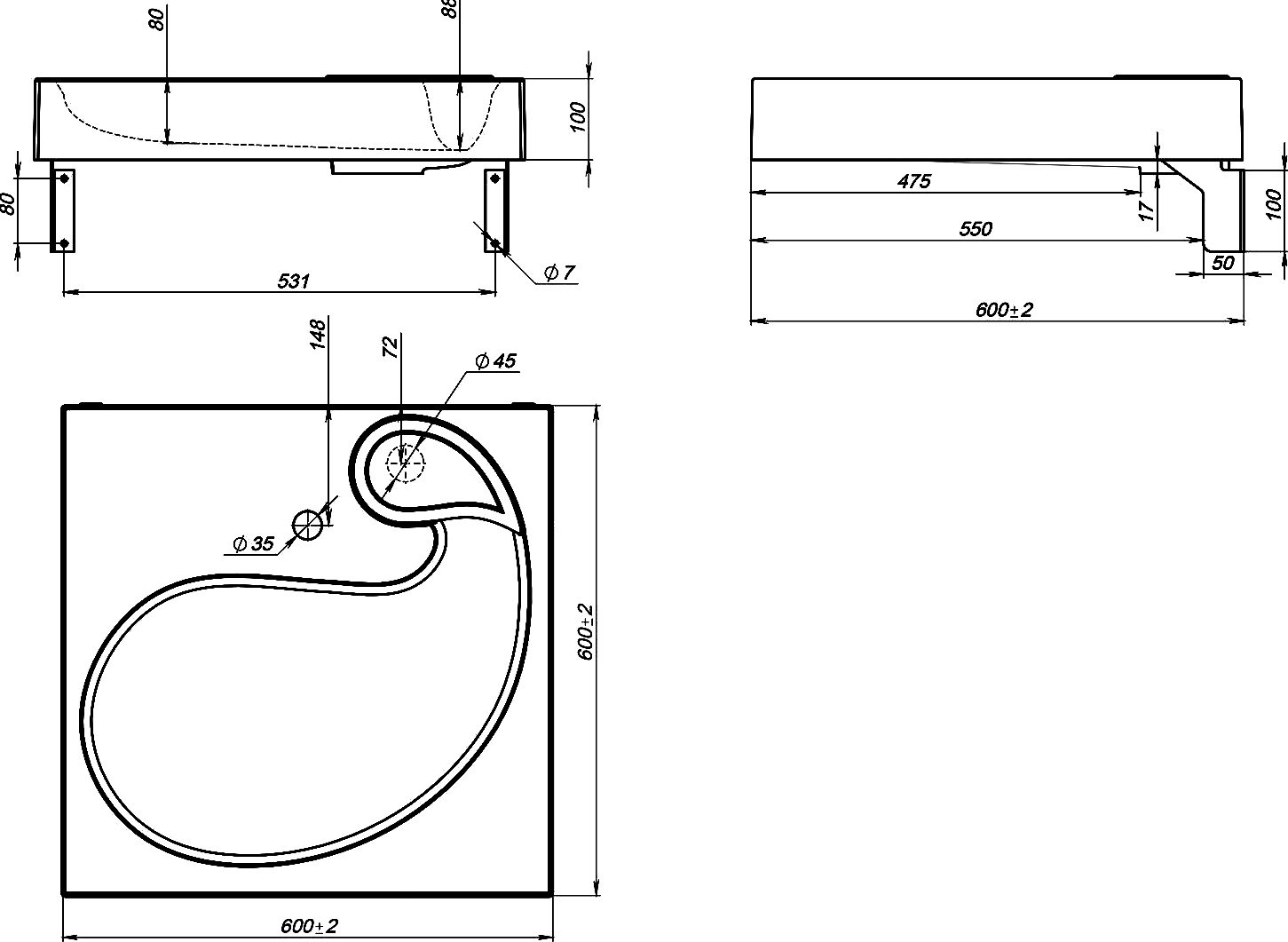 Диаметр слива: 4,5 см