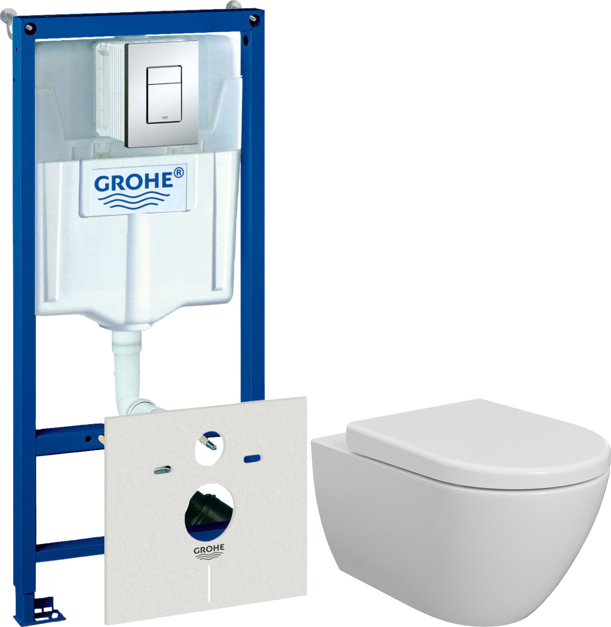 Комплект Унитаз подвесной BOCCHI Venezia 1295-001-0129 белый, с крышкой A0302-001 с микролифтом + Система инсталляции для унитазов Grohe Rapid SL 38775001H 4 в 1 с кнопкой смыва и шумоизоляцией