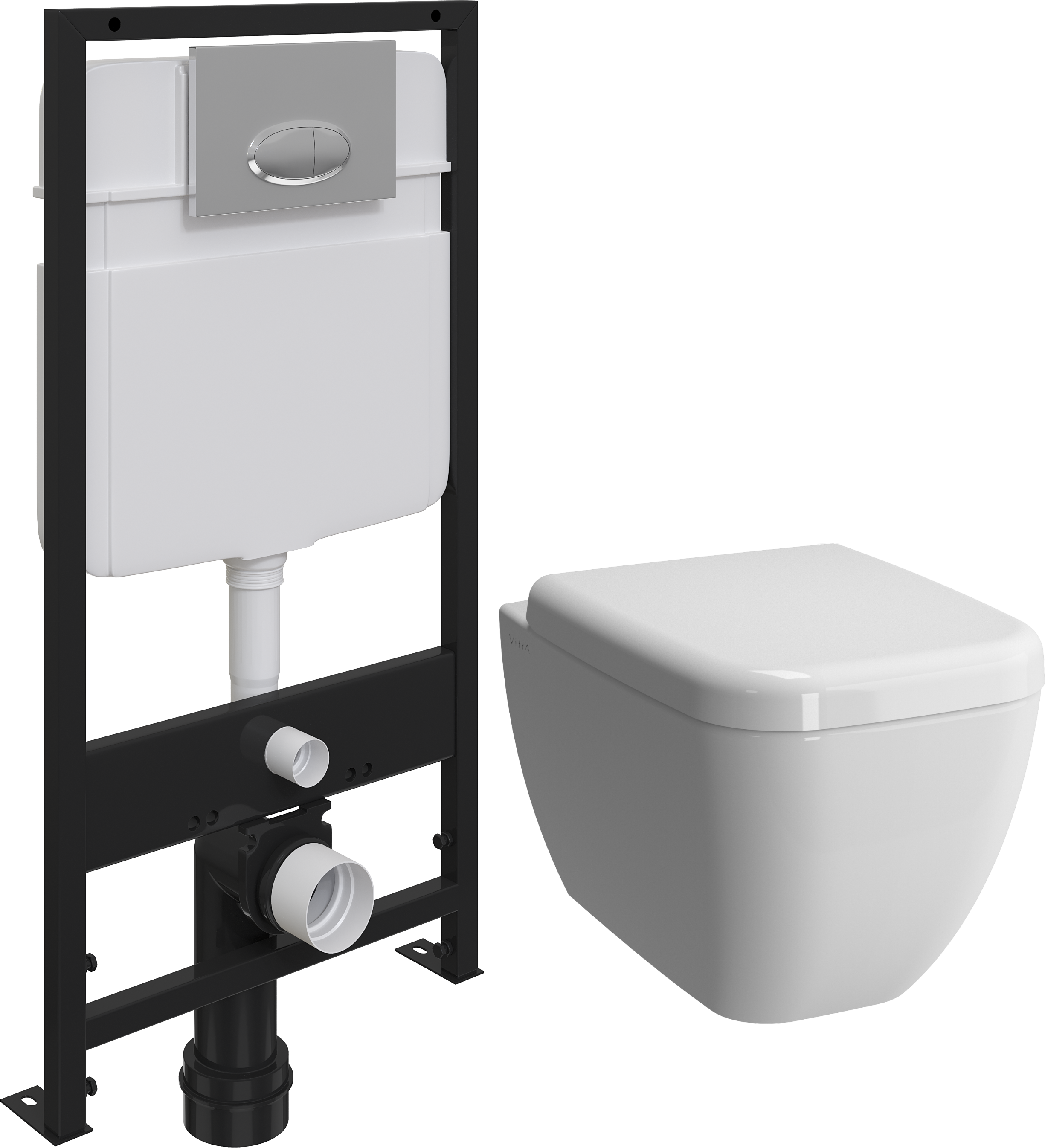 Комплект Унитаз подвесной VitrA Shift 7742B003-0075 безободковый, с микролифтом + Система инсталляции для унитазов EWRIKA ProLT 0026-2020 + Кнопка смыва EWRIKA 0051 хром