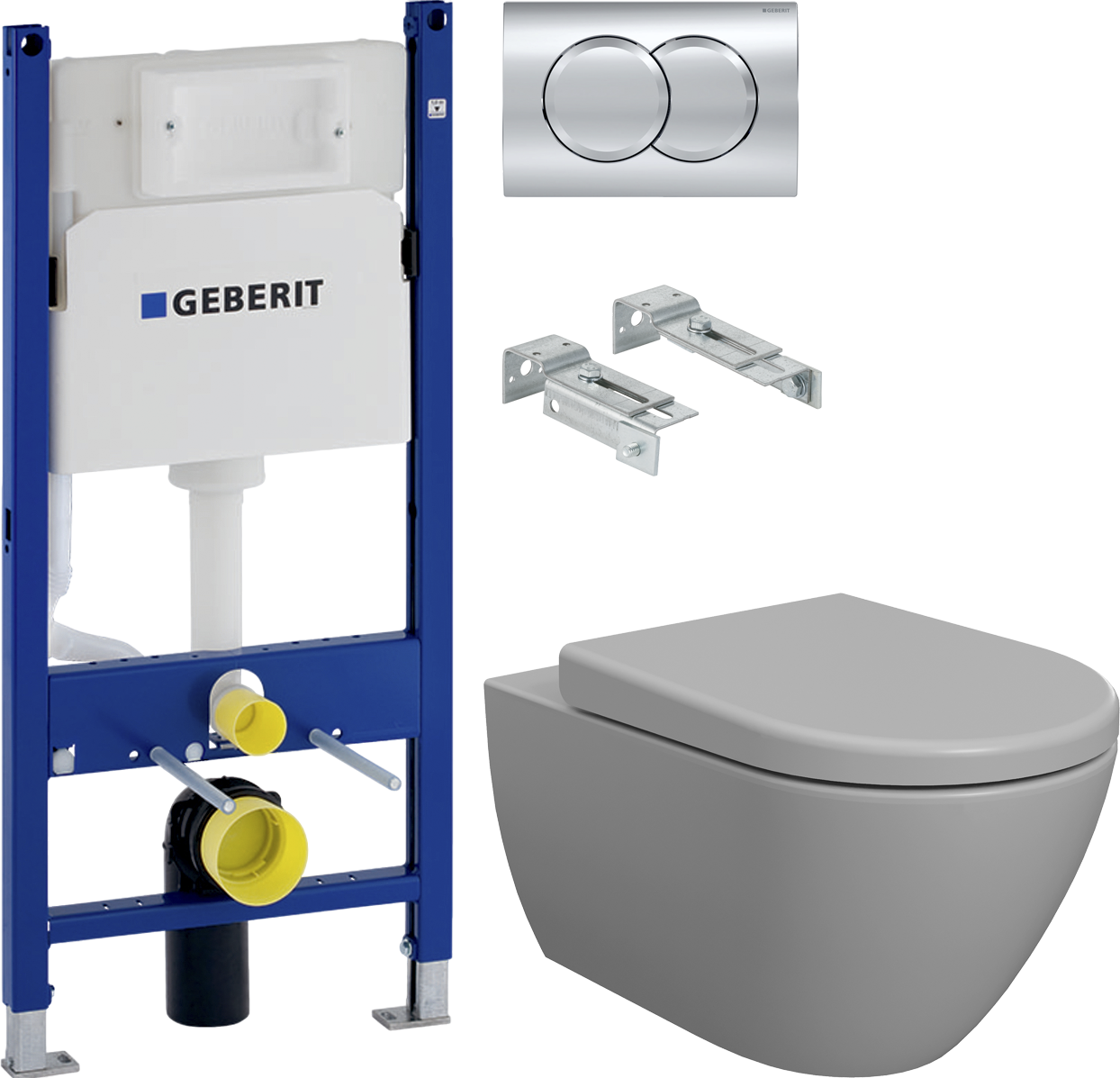 Комплект Унитаз подвесной BOCCHI Venezia 1295-006-0129 серый матовый, с крышкой A0302-006 с микролифтом + Система инсталляции для унитазов Geberit Duofix Delta 458.124.21.3 с кнопкой смыва, хром
