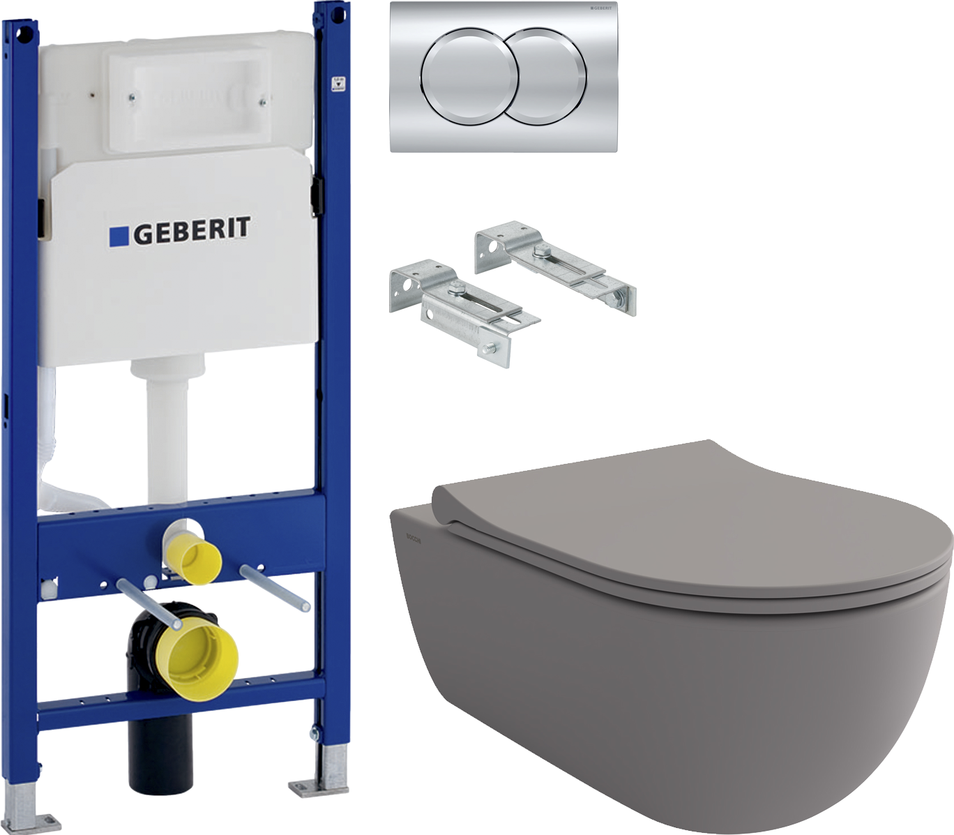 Комплект Унитаз подвесной BOCCHI V-Tondo 1416-006-0129 серый матовый, тонкая крышка с микролифтом + Система инсталляции для унитазов Geberit Duofix Delta 458.124.21.3 с кнопкой смыва, хром