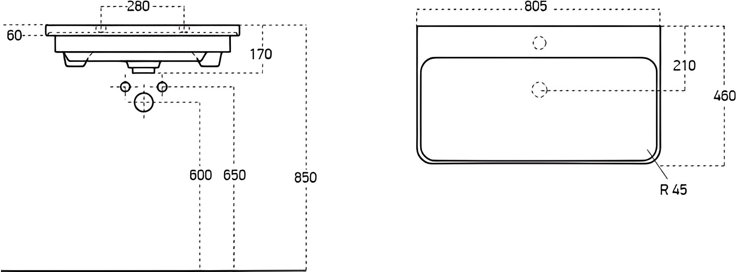 Размер раковины: 80,5x17x46 см