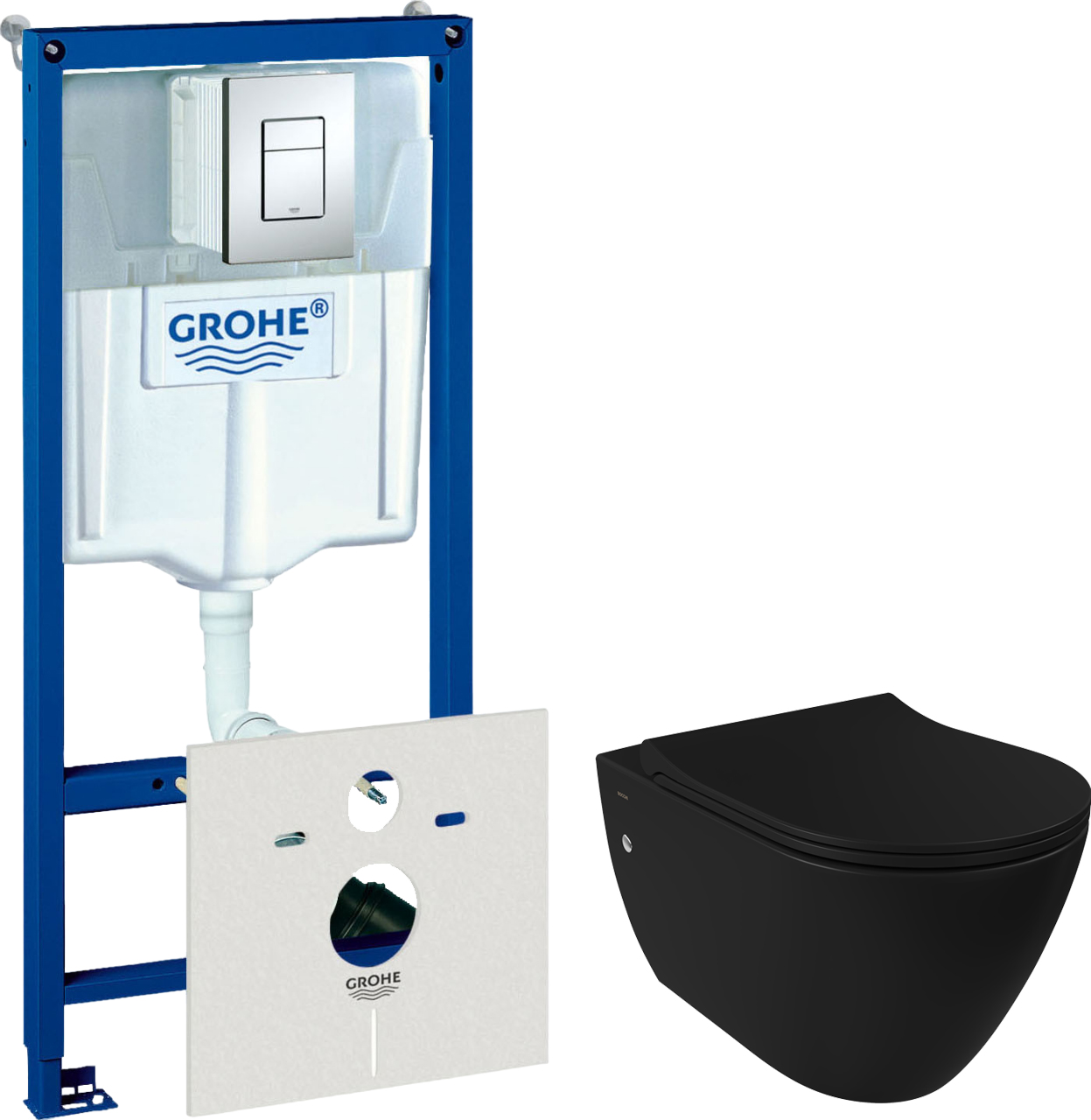 Комплект Унитаз подвесной BOCCHI Venezia 1295-004-0129 черный матовый, с крышкой A0336-004 с микролифтом + Система инсталляции для унитазов Grohe Rapid SL 38775001 4 в 1 с кнопкой смыва