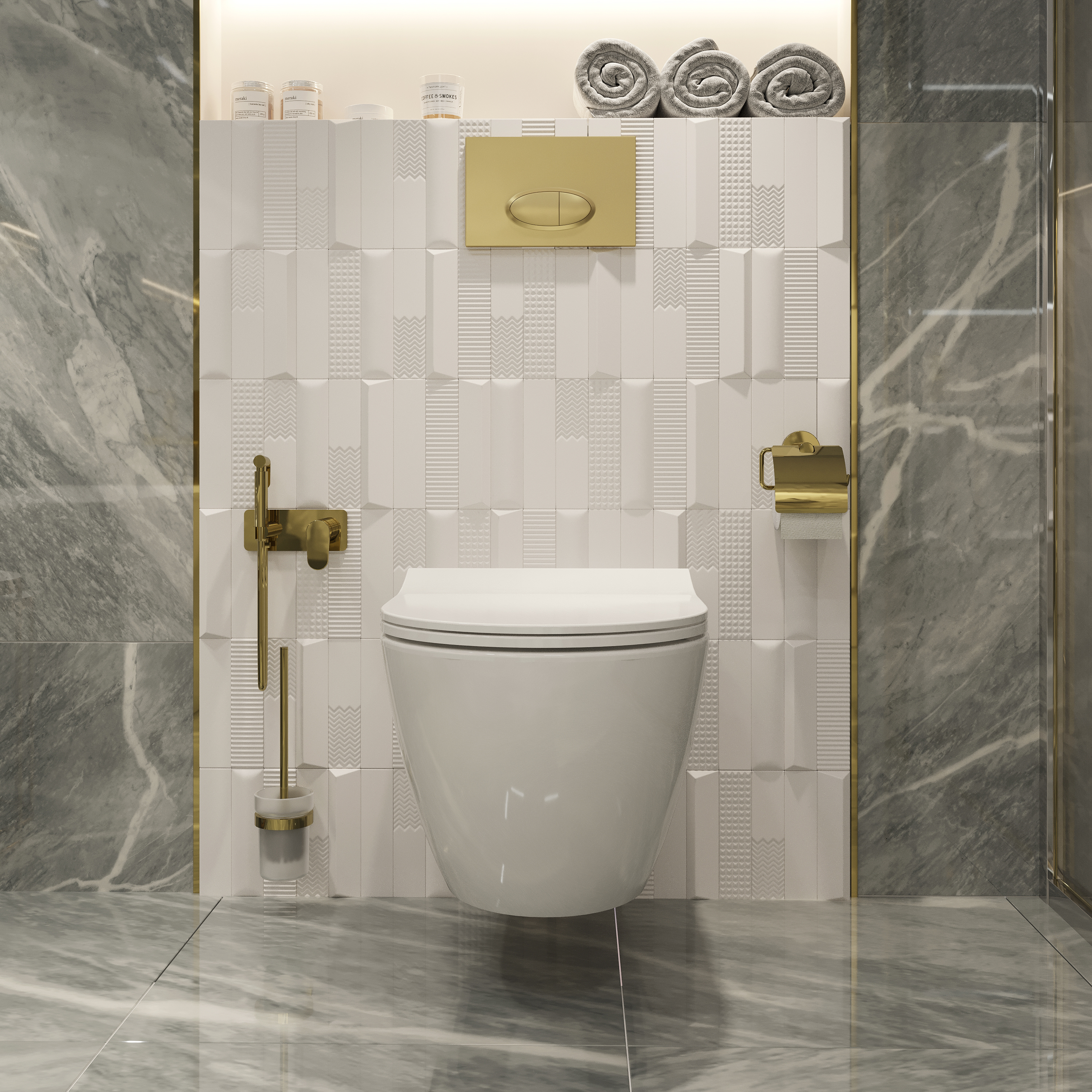 Оснащение: крепления,смывной бачок,кнопка смыва,звукоизолирующая прокладка