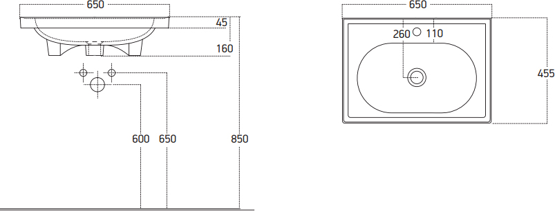Размер раковины: 65x16x45,5 см