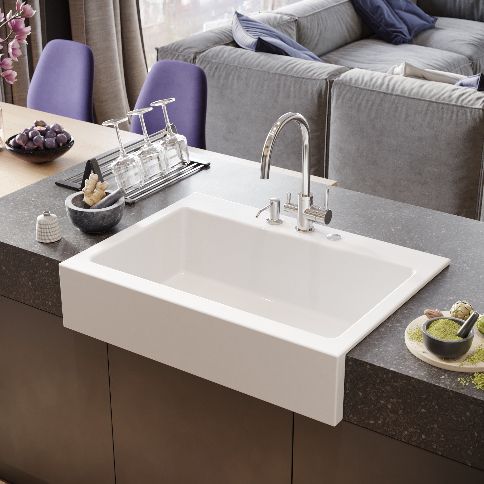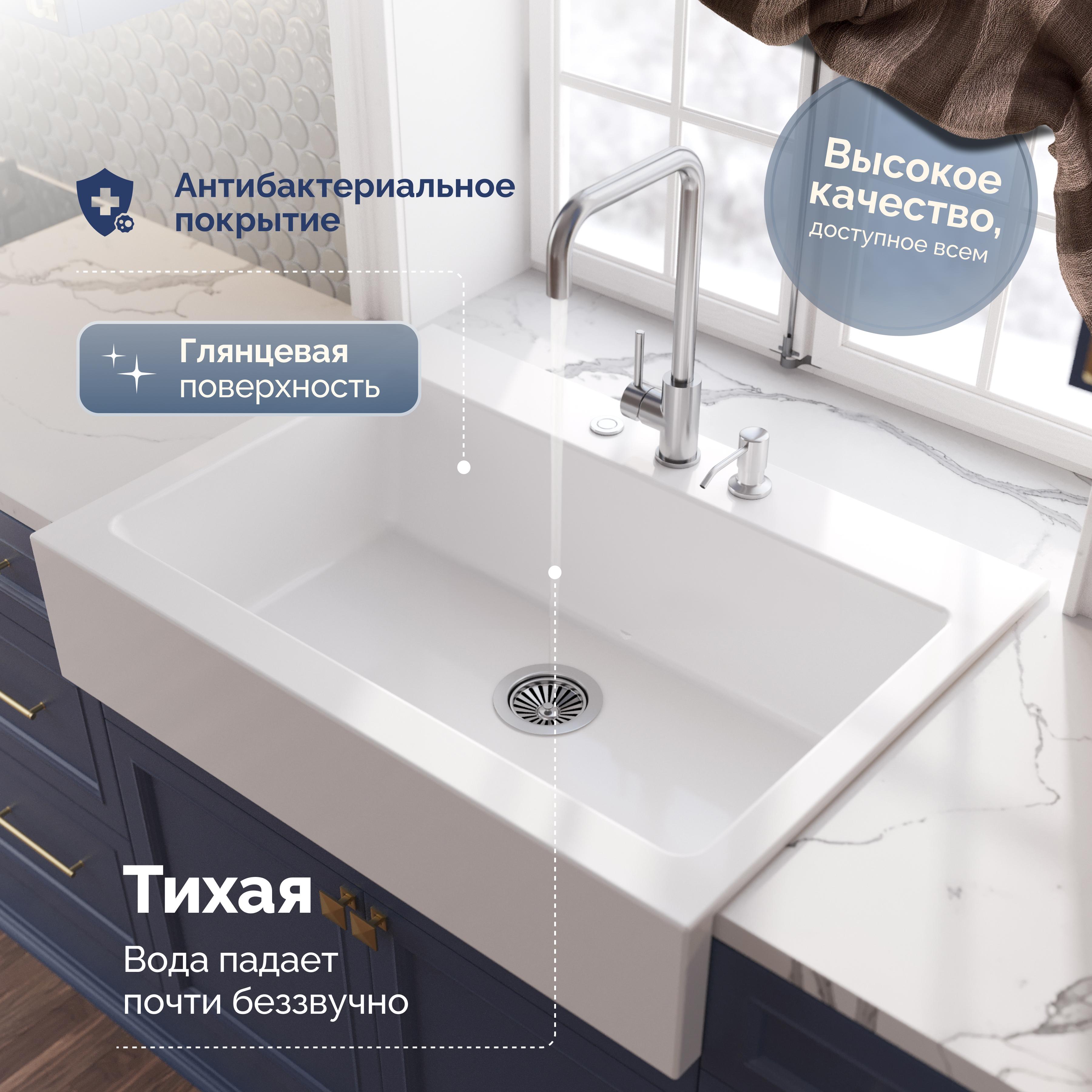 Мойка кухонная Domaci Сиена 50186-101 с 3 отверстиями, белый глянец