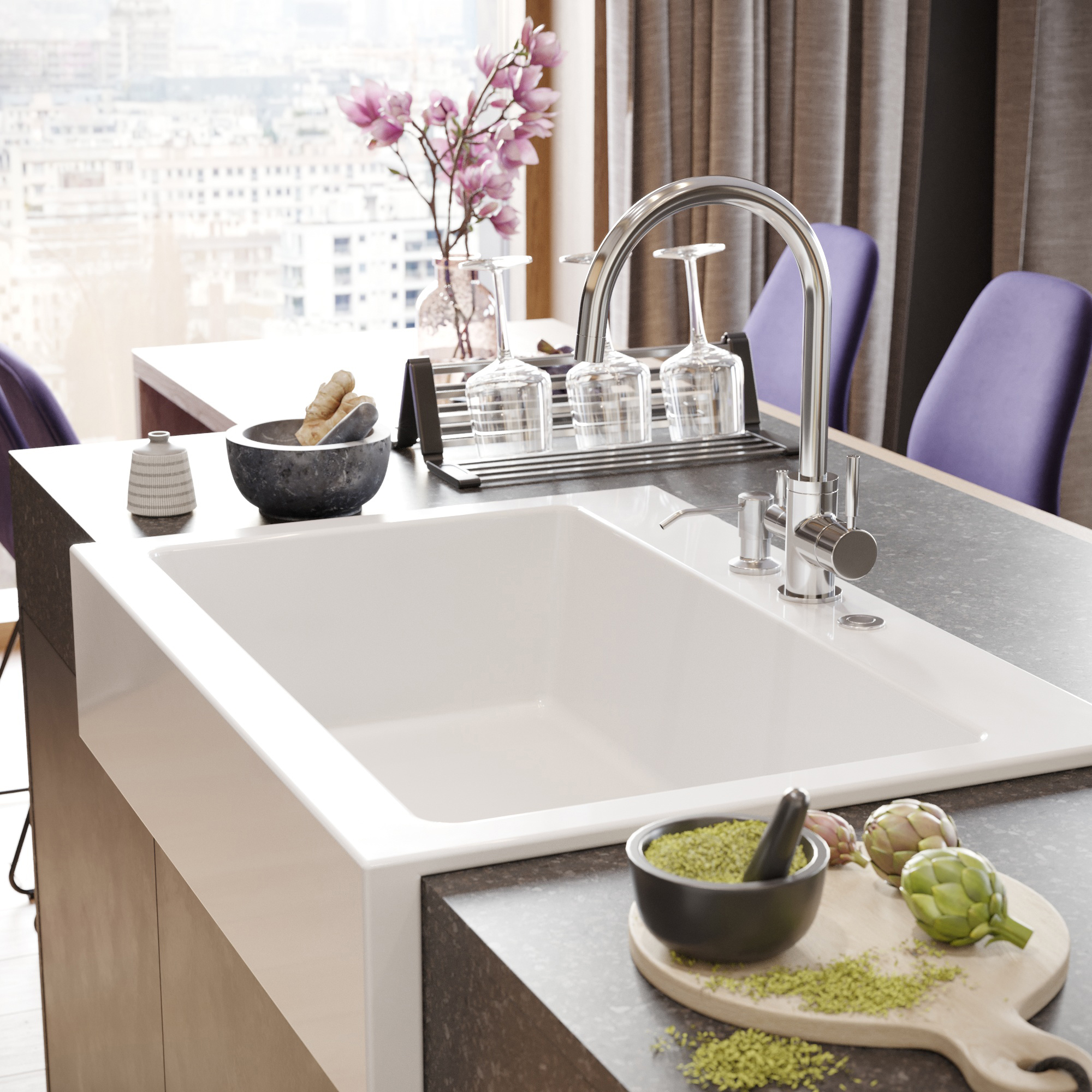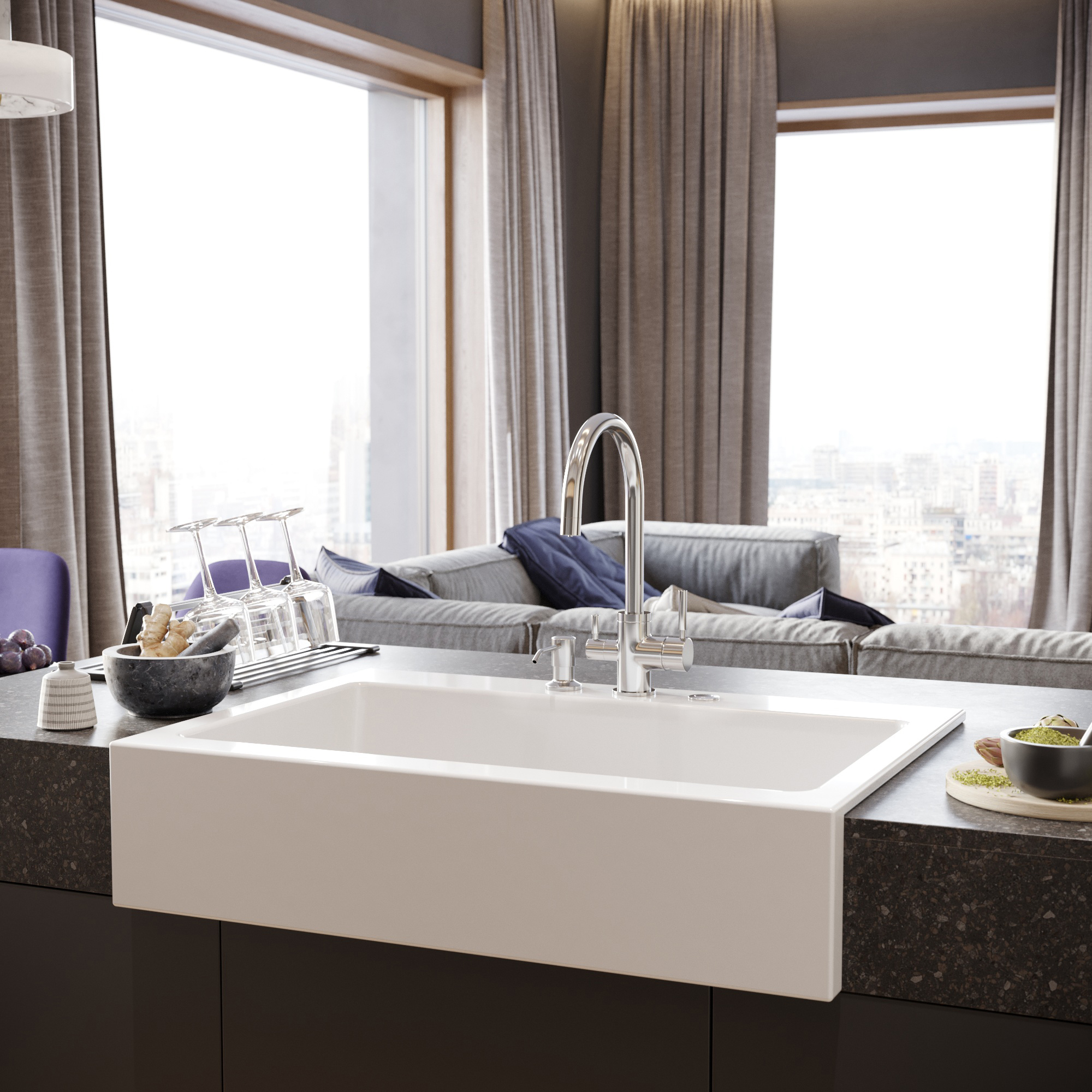 Готовые отверстия под смеситель: 3
