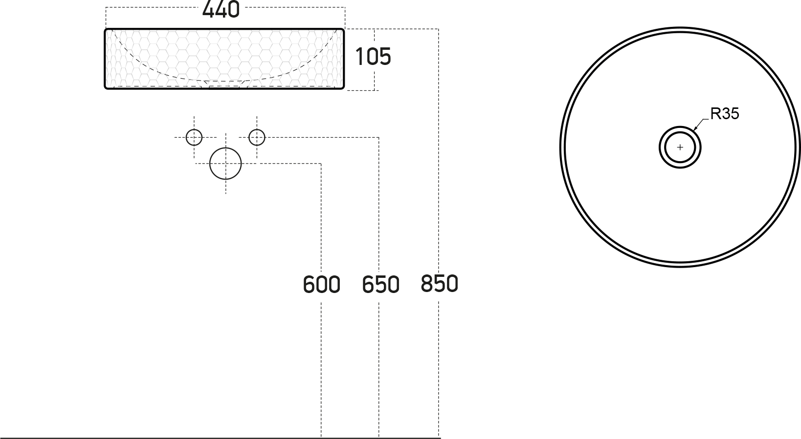 Размер раковины: 44x10,5x44 см
