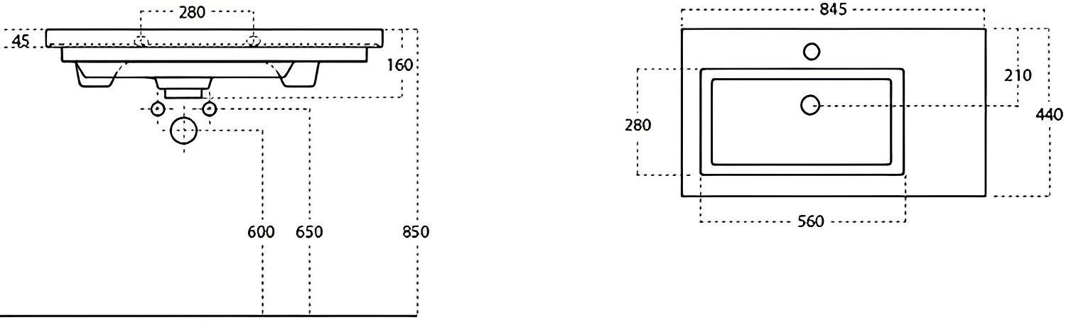 Размер раковины: 84,5x16x44 см