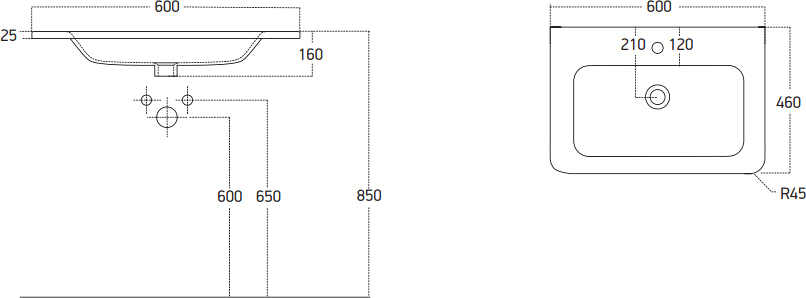 Размер раковины: 60x16x46 см