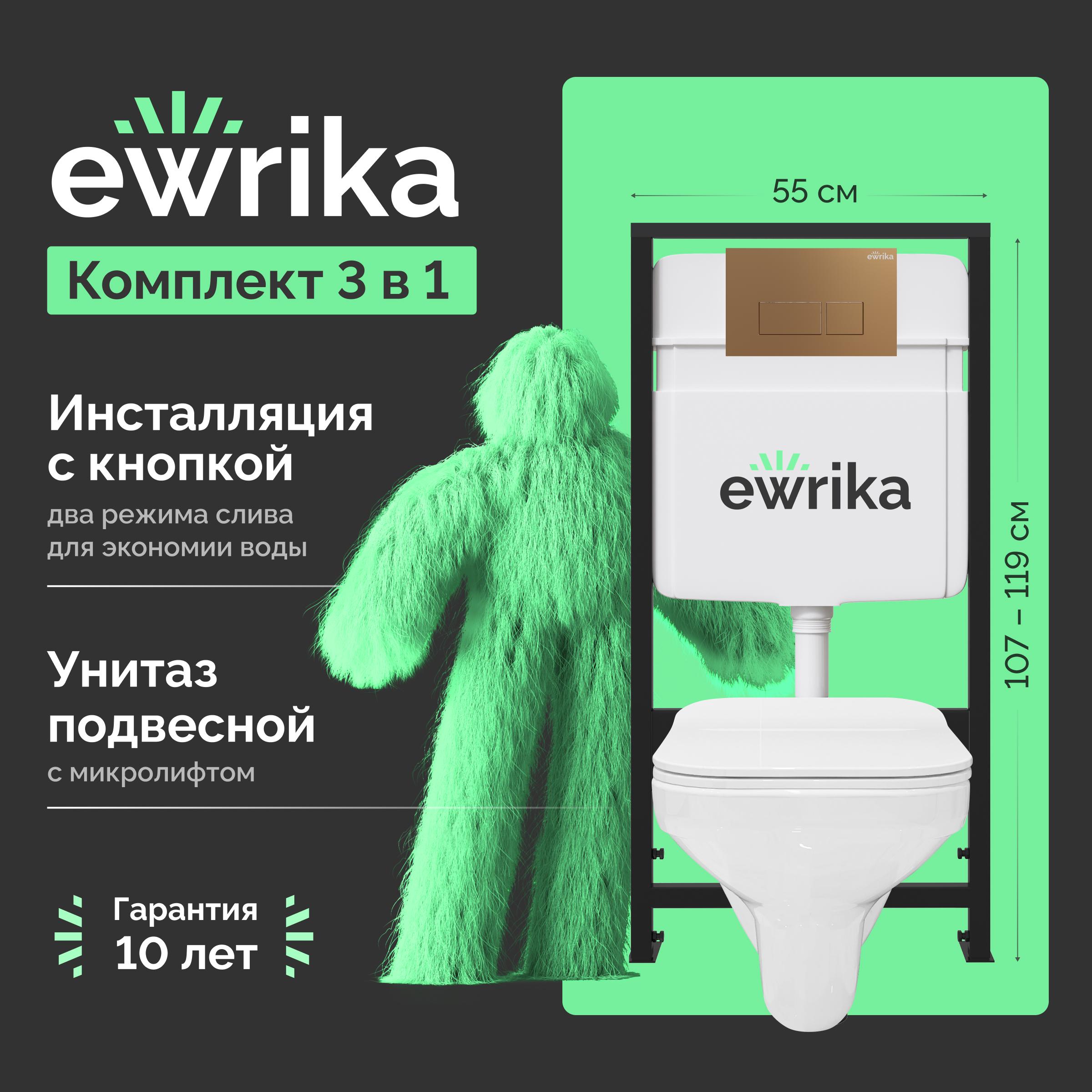 Комплект 3 в 1 Унитаз подвесной STWORKI Дублин SETK3504-0605-001-1-6000 + Инсталляция EWRIKA ProLT 0026-2020 + Кнопка 0043