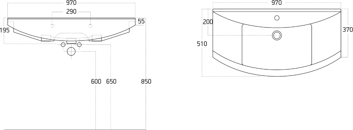 Размер раковины: 97x19,5x51 см