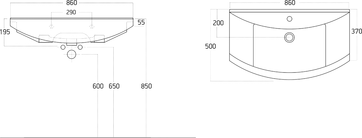 Размер раковины: 86x19,5x50 см