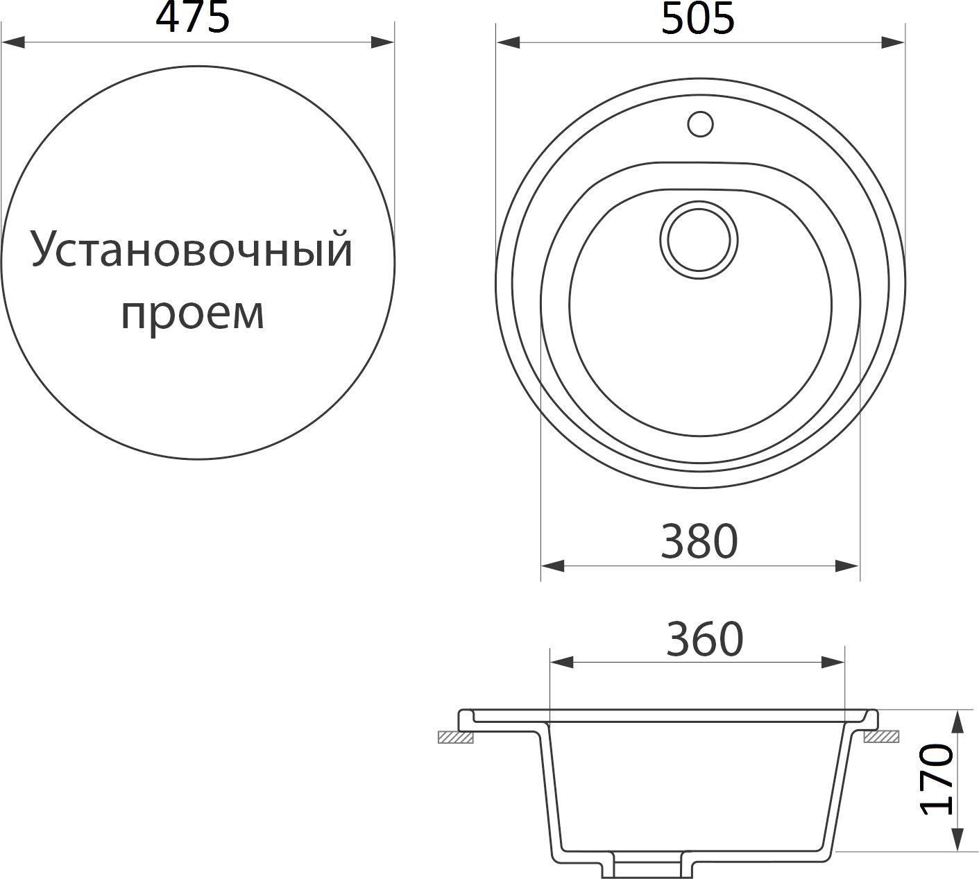 Намеченные отверстия под смеситель: нет