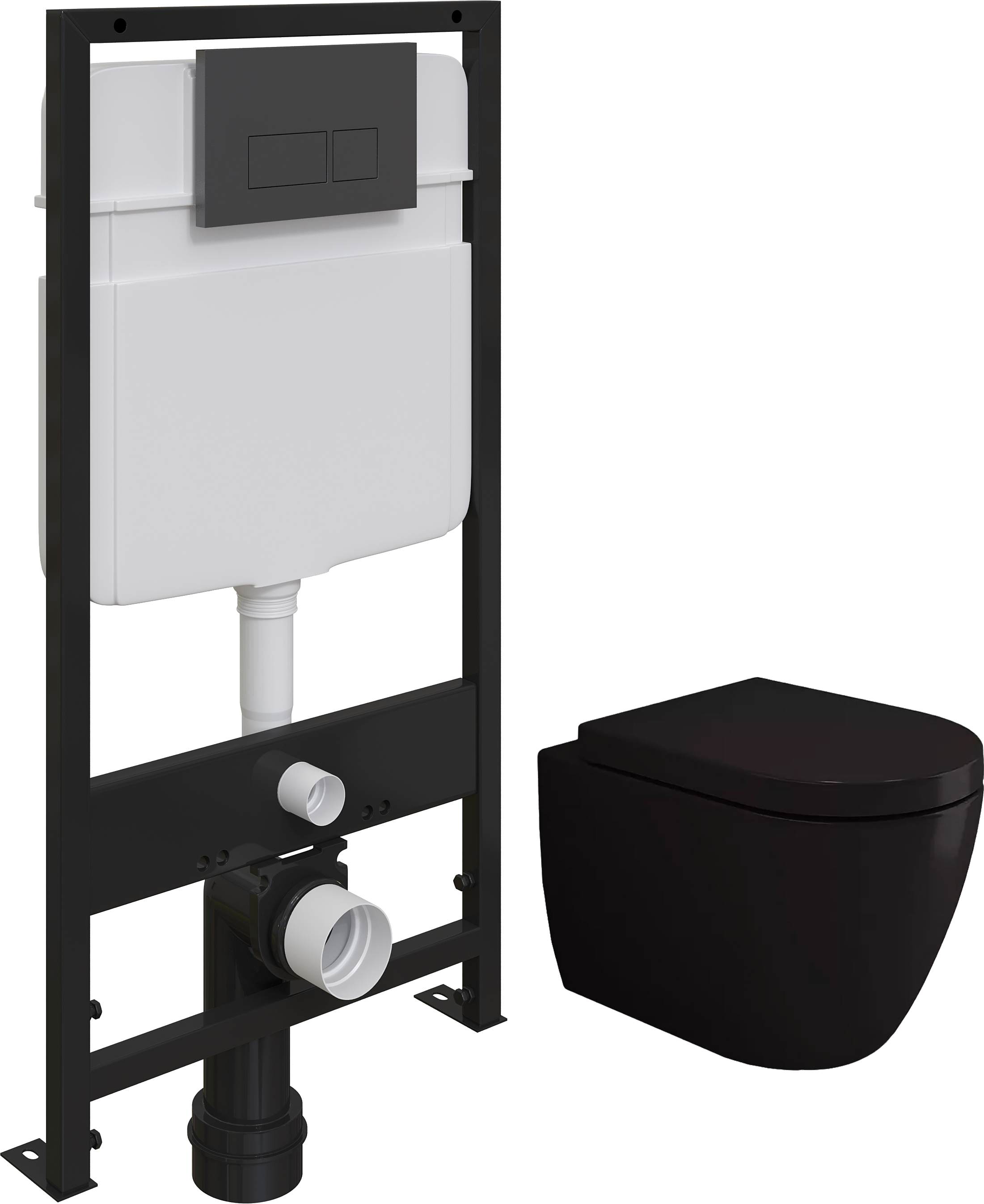 Комплект Унитаз подвесной BOCCHI Venezia 1295-004-0129 черный матовый, с крышкой A0302-004 с микролифтом + Система инсталляции для унитазов EWRIKA ProLT 0026-2020 с кнопкой смыва 0044 черной матовой