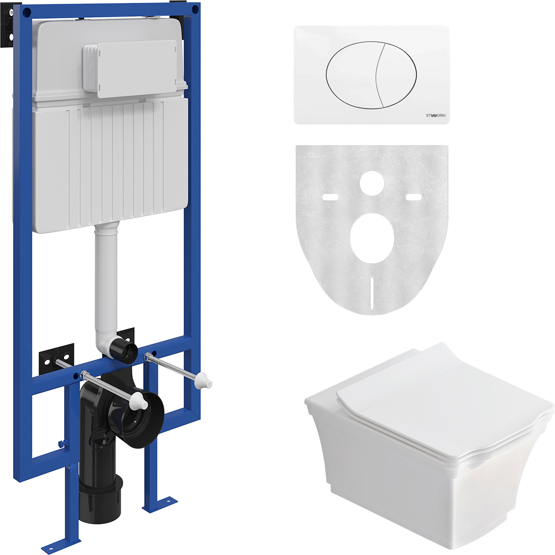 Комплект 3 в 1 Унитаз подвесной STWORKI Хадстен SETK3304-0616-001-1-6000 + Инсталляция 510162 + Кнопка 230824