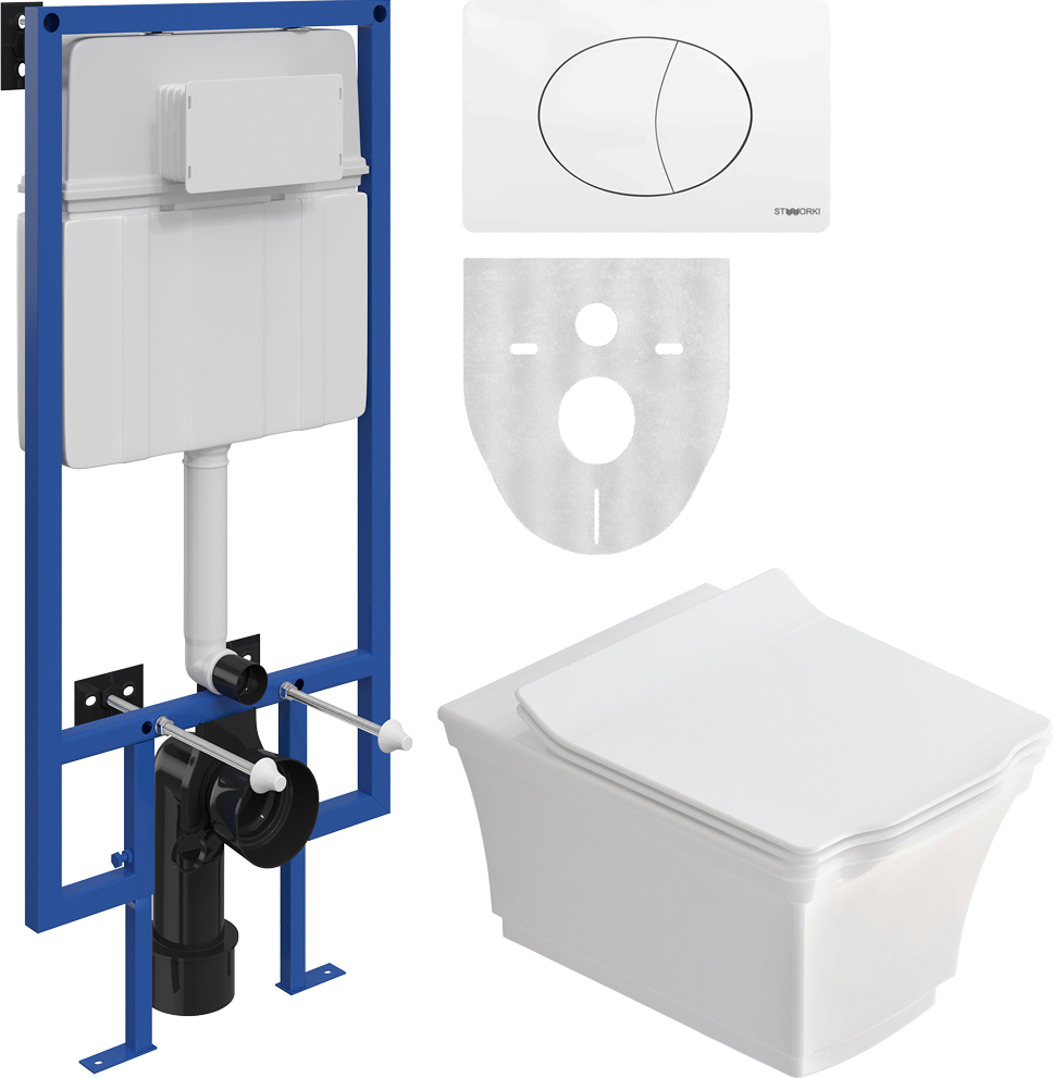 Комплект Унитаз подвесной STWORKI Хадстен SETK3304-0616-001-1-6000 с микролифтом + Инсталляция + Кнопка 230824 белая