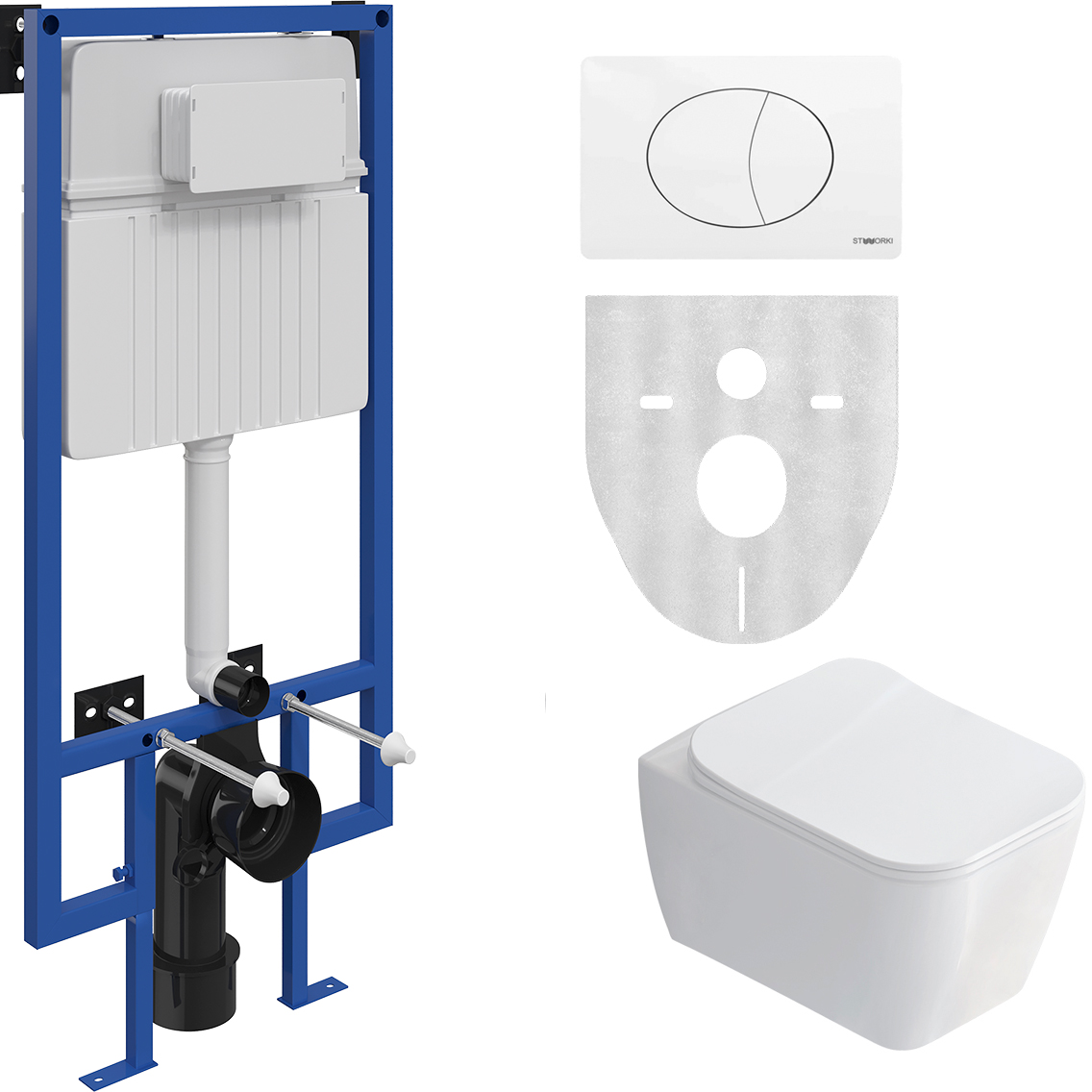 Комплект 3 в 1 Унитаз подвесной STWORKI Монтре SETK3204-2616 + Инсталляция 510162 + Кнопка 230824